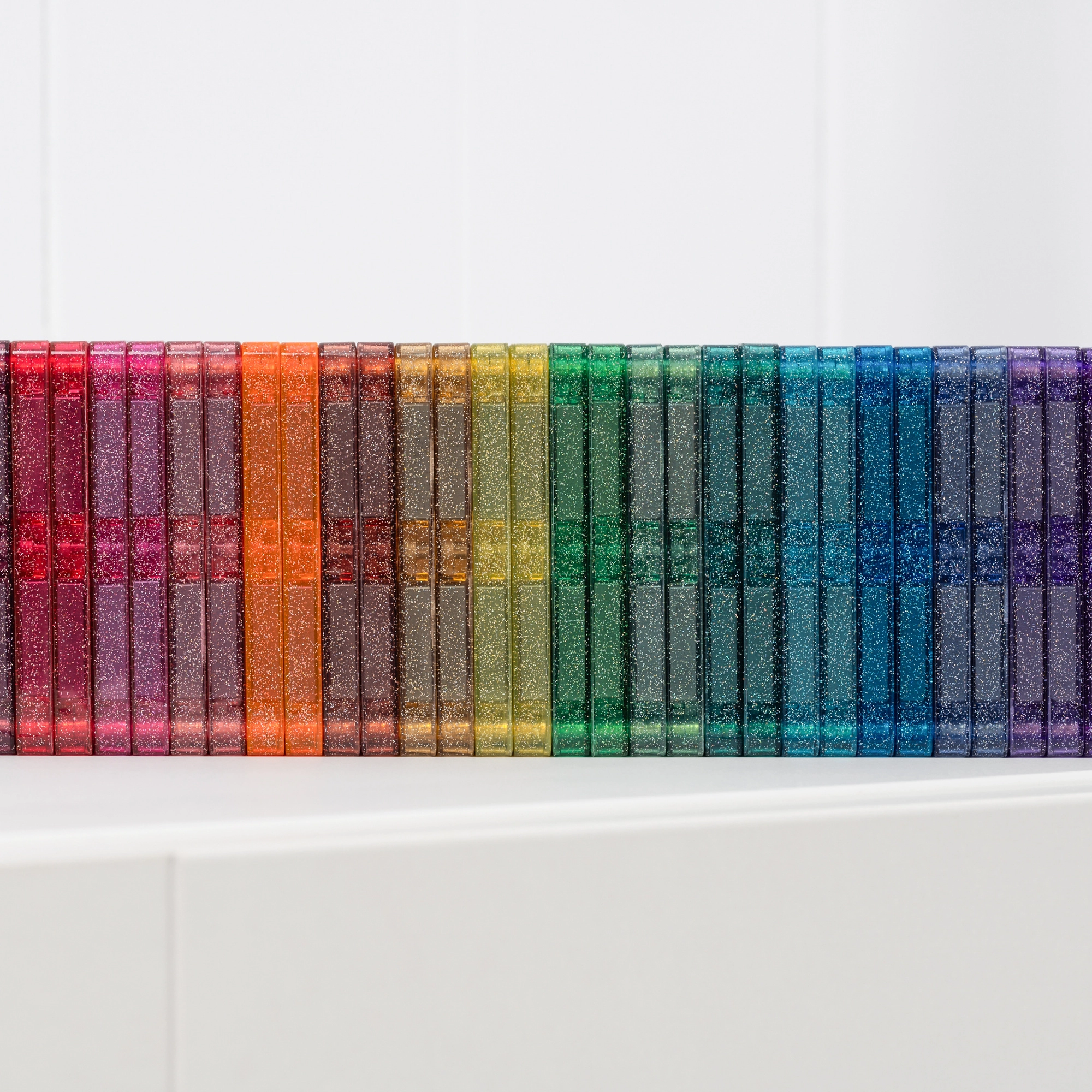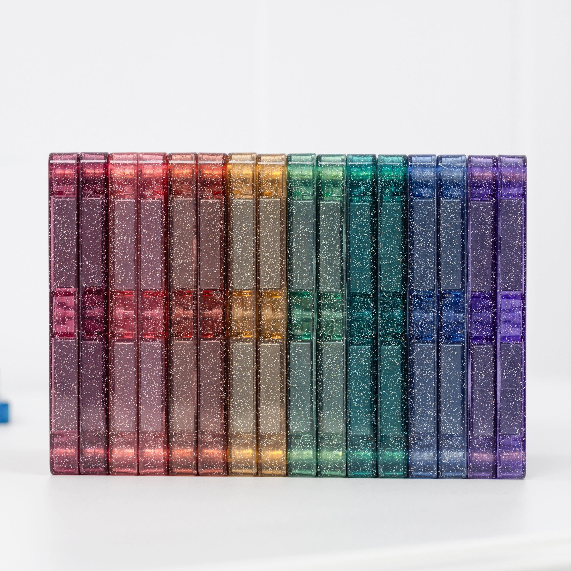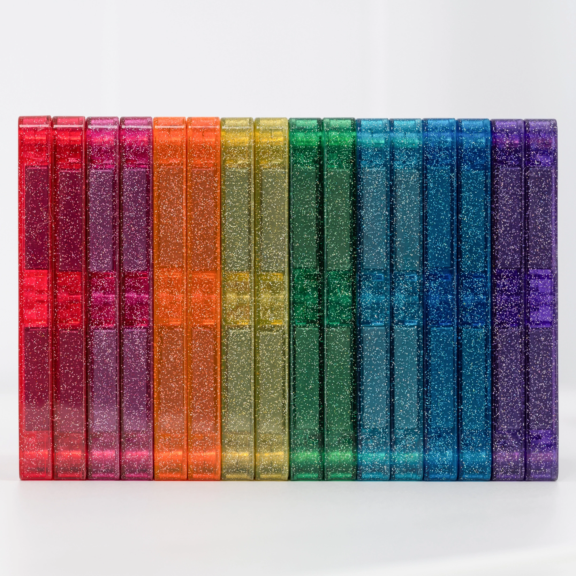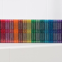 Plăcuțele durabile, cu culori rezistente și efect de sclipici îi încântă pe copii și susțin învățarea culorilor, a luminii și a formelor prin joc creativ.
