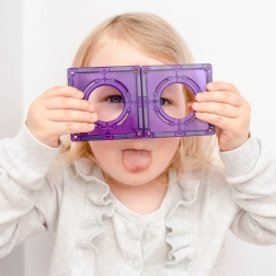 Magneții puternici, nituți, se atrag din toate direcțiile, astfel încât plăcile rămân bine fixate chiar și la construcții înalte. Copiii înțeleg ușor principiile simetriei și echilibrului.