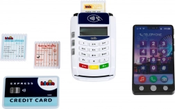 Pachetul include card de plată, 3 chitanțe și smartphone cu ecran holografic, care suportă plata prin „atingere”. Telefonul are 3 butoane funcționale cu sunete diferite și o lanternă. Terminalul este alimentat cu baterii (neincluse), astfel încât distracția poate dura ore întregi.