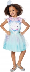 Costum de carnaval adorabil inspirat de serialul Gabin Căsuța Pisicii care transformă micii fani în personajul Lakotek. Rochiță tutu din tul ușoară, cu fustă ombré și imprimeu cupcake, completată de bentiță cu mini bonetă de bucătar, ideală pentru carnaval, petreceri tematice și jocuri de rol. Plăcutul 100% poliester asigură confort pentru copii cu vârsta de 3–5 ani (98–110 cm).