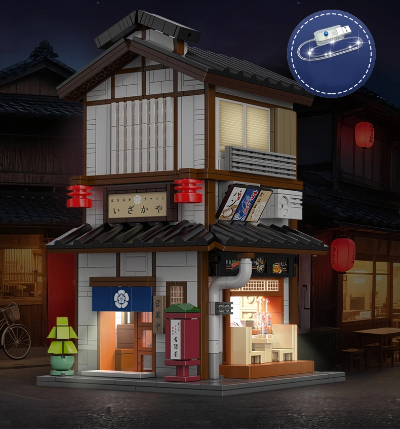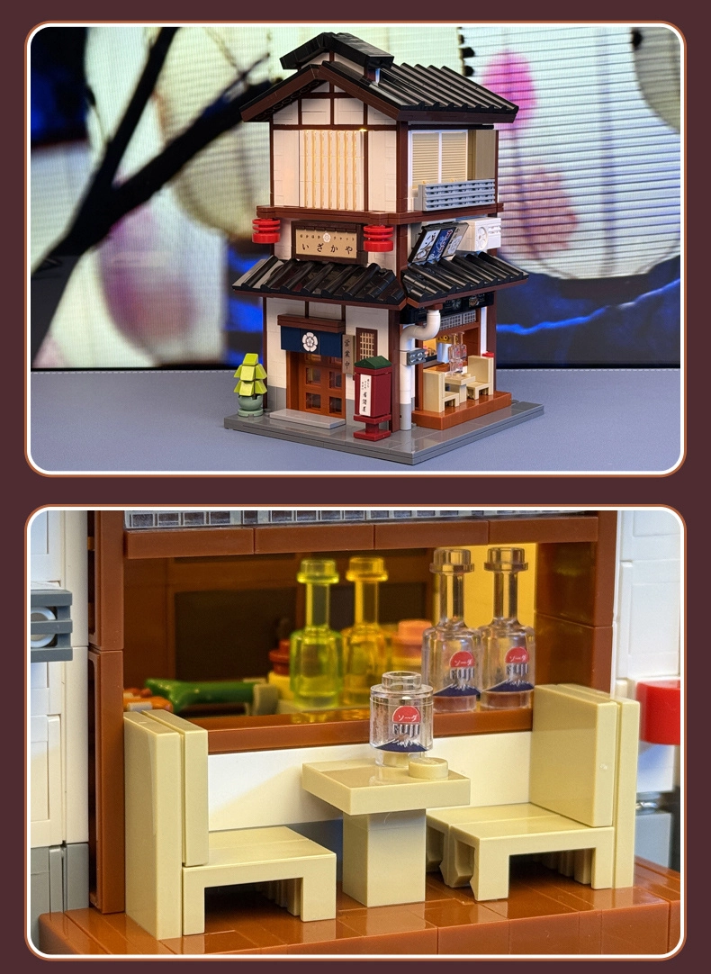 Descoperă farmecul arhitecturii japoneze tradiționale în setul unic CaDA. Lampioane de hârtie realiste, detalii din lemn, bar și elemente de interior bine lucrate creează o atmosferă inconfundabilă. Datorită peretelui lateral rabatabil poți arunca ușor o privire în interior fără a demonta modelul.