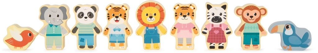 Setul conține figurine drăguțe de animale – tigru, panda, maimuțică, păsărică și altele – care inspiră povestirea și jocul liber.