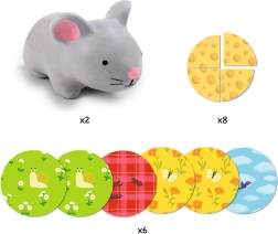 Jocul Djeco Little Lucky este ideal pentru copiii care iubesc jocurile alerte și simple, cu reguli clare. Scopul este să strângi cât mai rapid bucăți de brânză ghicind corect ce culoare se ascunde sub următorul câmp. Jocul susține antrenarea memoriei, gândirea logică și spiritul de observație.