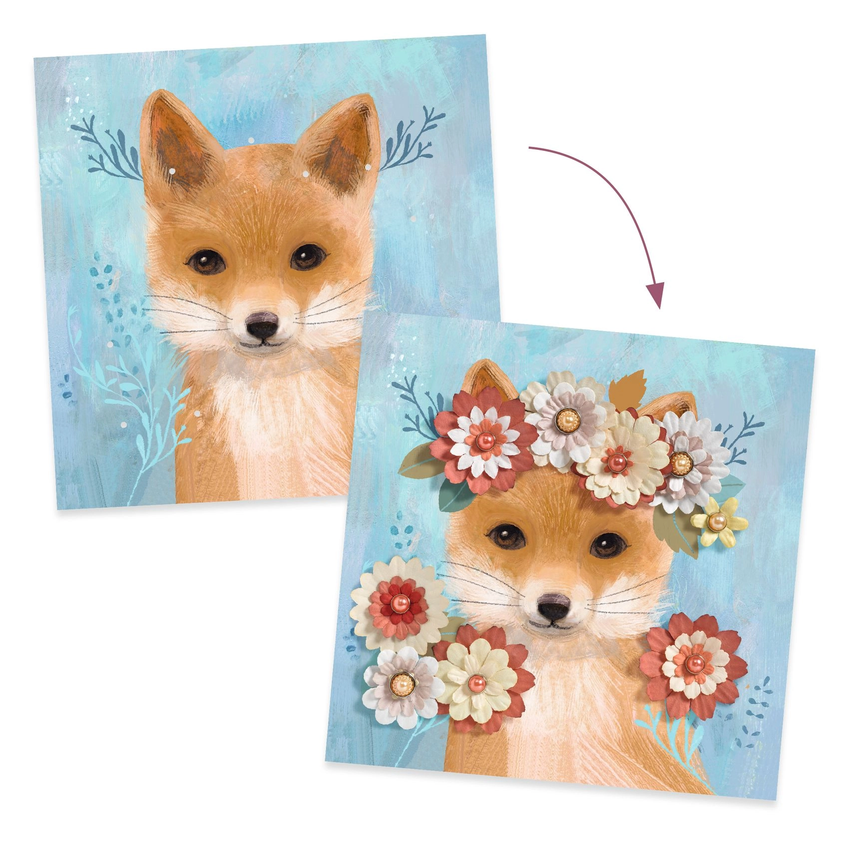 Descoperiți setul creativ pentru copii de la DJECO, cu ajutorul căruia prind viață patru imagini fermecătoare cu animale împodobite cu coroane de flori. Datorită petalelor din hârtie și elementelor de prindere perlate, copiii își dezvoltă motricitatea fină, creativitatea și simțul pentru culori și compoziție. Ideal ca cadou și pentru creații alături de părinți.
