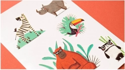- Culori vii și ilustrații originale cu motive de pui de leu și junglă