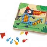 Mozaicul colorat de la DJECO dezvoltă imaginația, îndemânarea și capacitatea de concentrare a copiilor. Datorită asamblării simple, copiii își exersează motricitatea fină și învață răbdarea. Distracție creativă pentru micii artiști, utilizare ușoară și excelent instrument didactic pentru orice cameră de joacă.