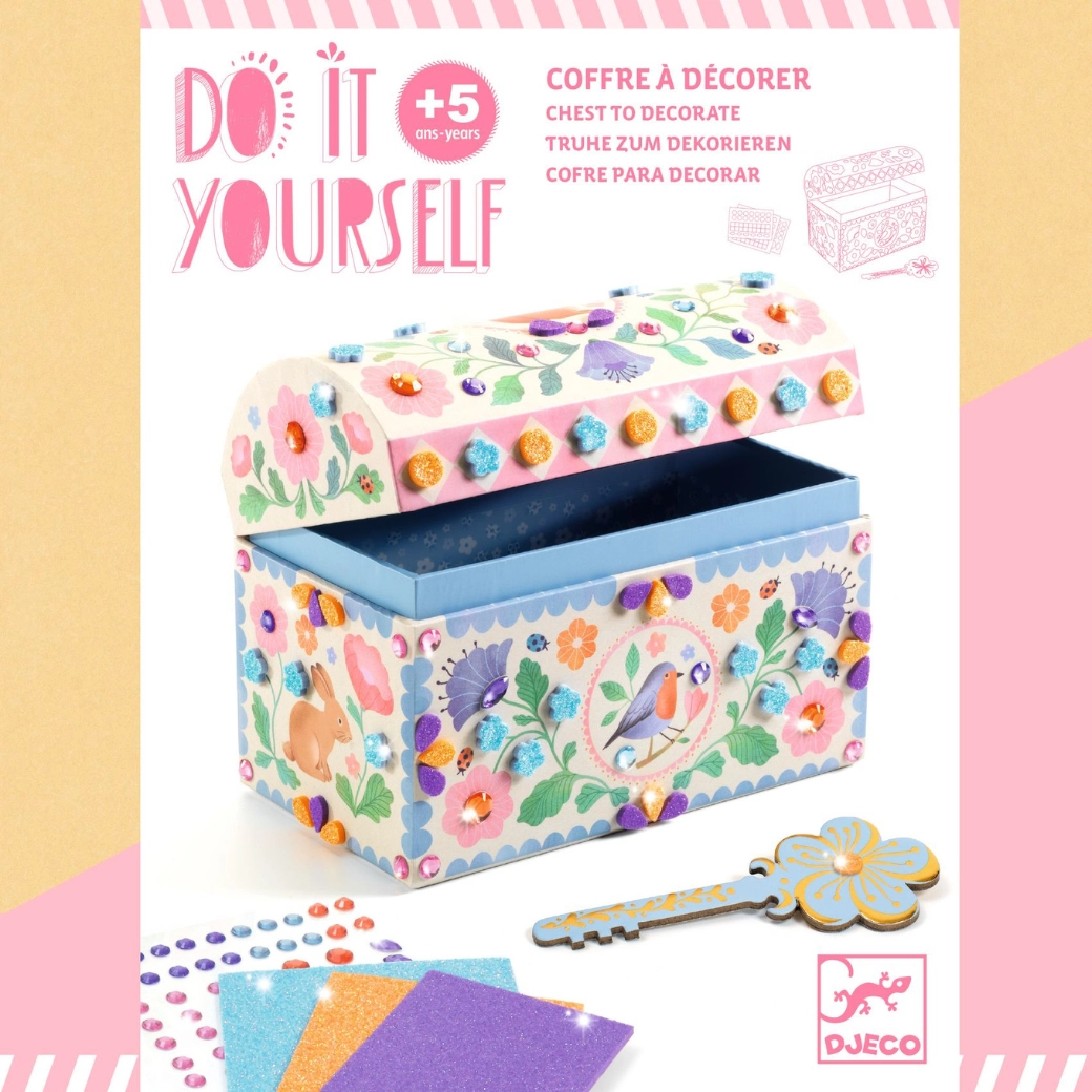 Creați-vă propriul cufăr cu fund dublu și ascundeți-vă comorile cu stil! Acest set creativ de la Djeco dezvoltă motricitatea fină, creativitatea și imaginația copiilor. Instrucțiuni ușoare, materiale de calitate și un rezultat frumos de care copiii vor fi mândri.