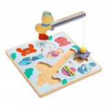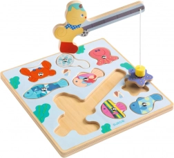 Descoperiți un joc captivant care îmbină puzzle-ul de inserare și pescuitul magnetic într-unul singur. Fiecare peștișor are forma și locul său, iar copilul îl „prinde” cu undița magnetică și îl așază corect. Jocul dezvoltă motricitatea fină, gândirea logică și recunoașterea formelor și culorilor.