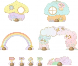 Setul include decupaje independente cu căsuțe, curcubee și indicatoare, care extind scena finală și stimulează imaginația în jocul deschis.