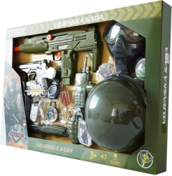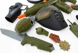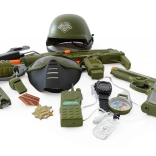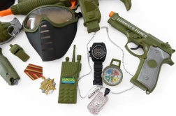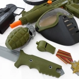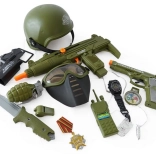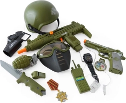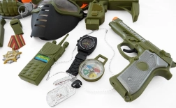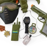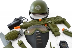 Set pentru micul soldat, cu cască, pistol și alte accesorii.