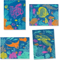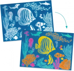 Sunt incluse motive din lumea subacvatică, datorită cărora vor prinde viață imagini expresive cu pești, corali și plante marine. Copiii își dezvoltă gândirea creativă, învață răbdarea și se bucură de satisfacția operei finale.