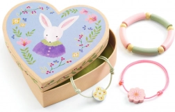 O cutie cadou adorabilă în formă de inimă de la Djeco ascunde trei brățări delicate pentru micile cochete. Ideală ca dar care va bucura și va susține plăcerea copiilor de a se îmbrăca. 3 brățări elegante, motiv frumos cu iepuraș și cutie practică în formă de inimă pentru depozitare în siguranță.