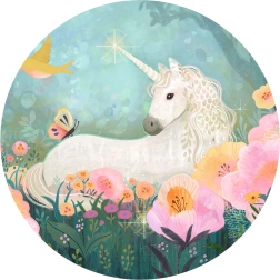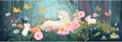 - Motiv magic: pădure de basm și unicorni în culori bogate.