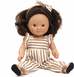 Ținuta cu dungi, bentița asortată și sandalele confortabile îi oferă păpușii un stil aparte. Trăsăturile realiste și părul castaniu încurajează jocul empatic și de îngrijire, care dezvoltă abilitățile sociale.