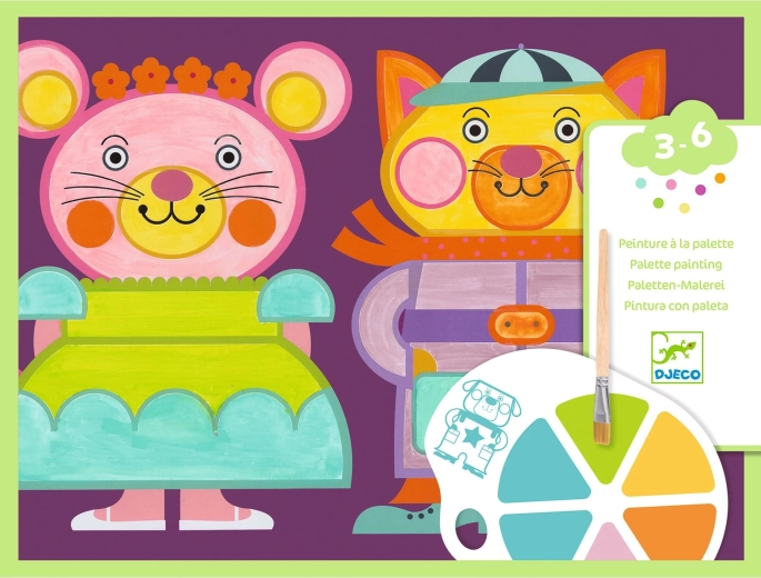 Set creativ de pictură pentru copii de la 3 ani, de la marca DJECO, aduce o activitate distractivă de pictat cu paletă, pensulă și motive cu animăluțe drăgălașe. Susține motricitatea fină, creativitatea și prima familiarizare cu culorile într-un mod sigur și jucăuș.