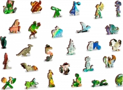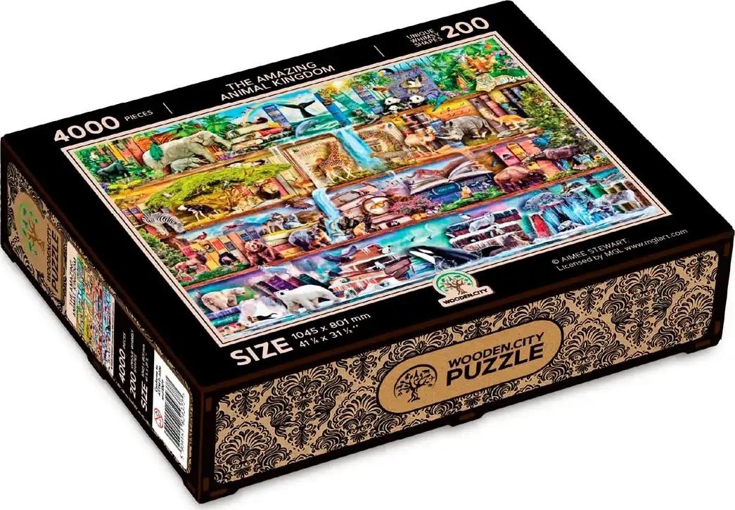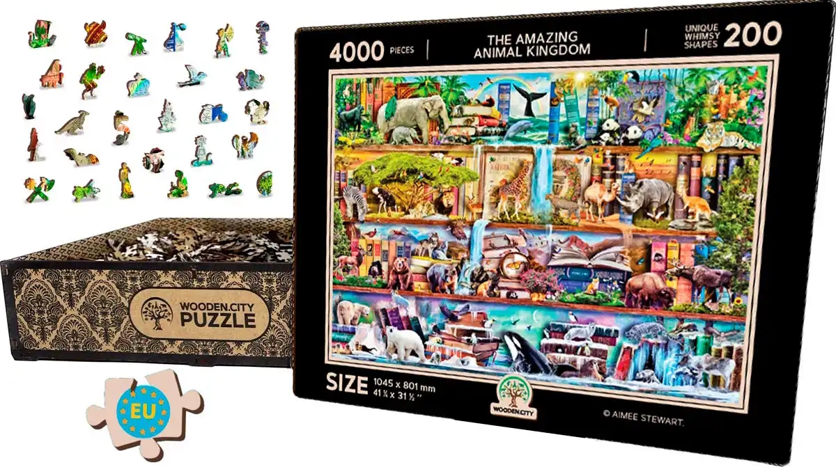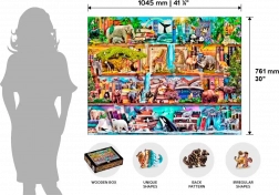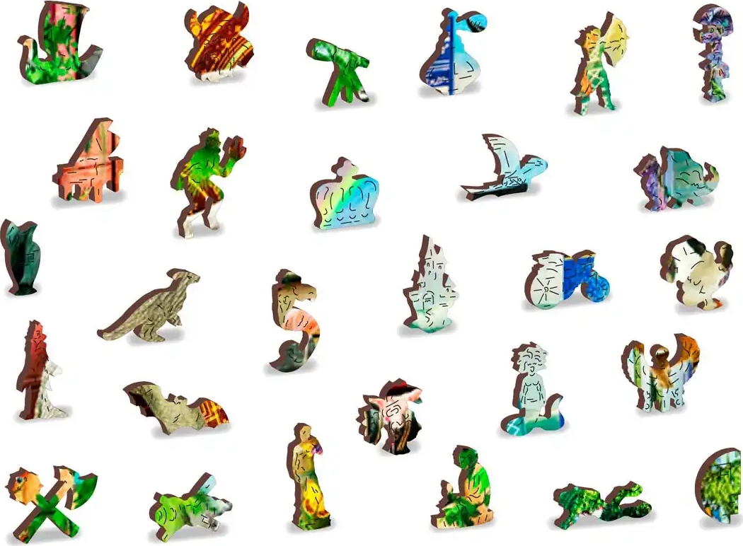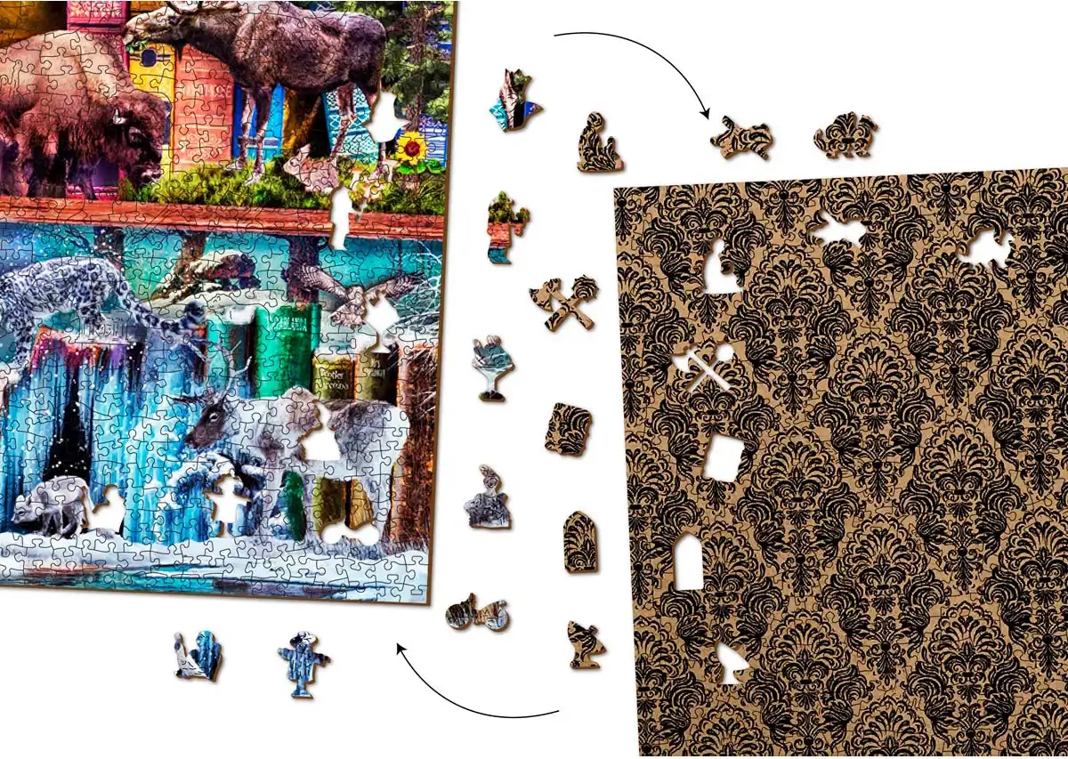 Intrați în lumea detaliilor și a culorilor cu motivul Regatul uimitor al animalelor. Puzzle-ul din lemn din placă HDF rigidă (3–4 mm) impresionează nu doar prin ilustrația frumoasă, ci și prin piesele whimsy inteligent proiectate, care corespund temei – animale, obiecte și clădiri celebre. O parte dintre ele pot fi asamblate ca figurine mici pentru un efect și mai puternic.