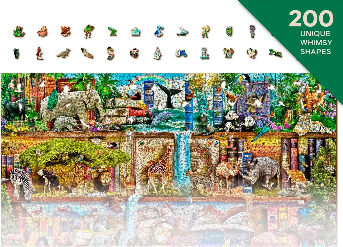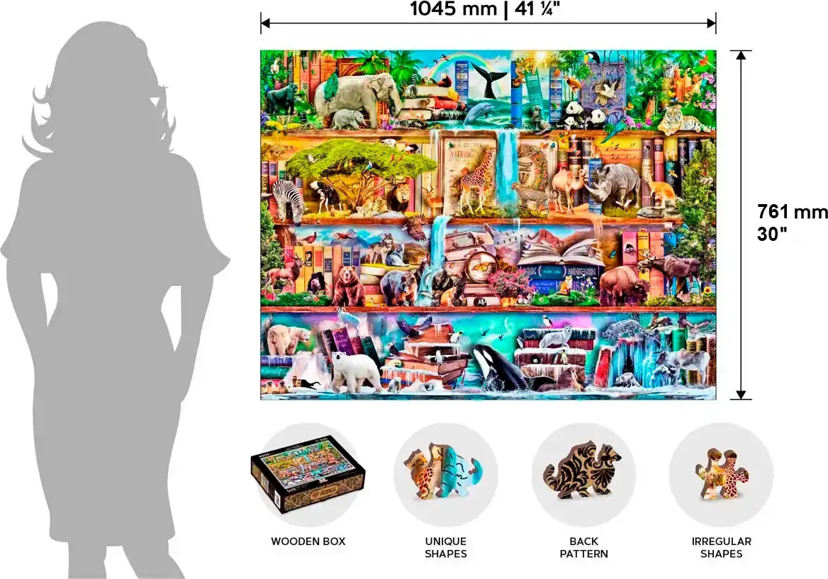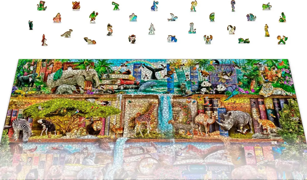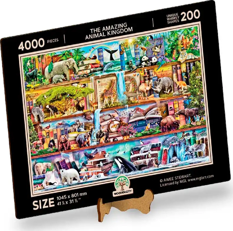 Intrați în lumea detaliilor și a culorilor cu motivul Regatul uimitor al animalelor. Puzzle-ul din lemn din placă HDF rigidă (3–4 mm) impresionează nu doar prin ilustrația frumoasă, ci și prin piesele whimsy inteligent proiectate, care corespund temei – animale, obiecte și clădiri celebre. O parte dintre ele pot fi asamblate ca figurine mici pentru un efect și mai puternic.
