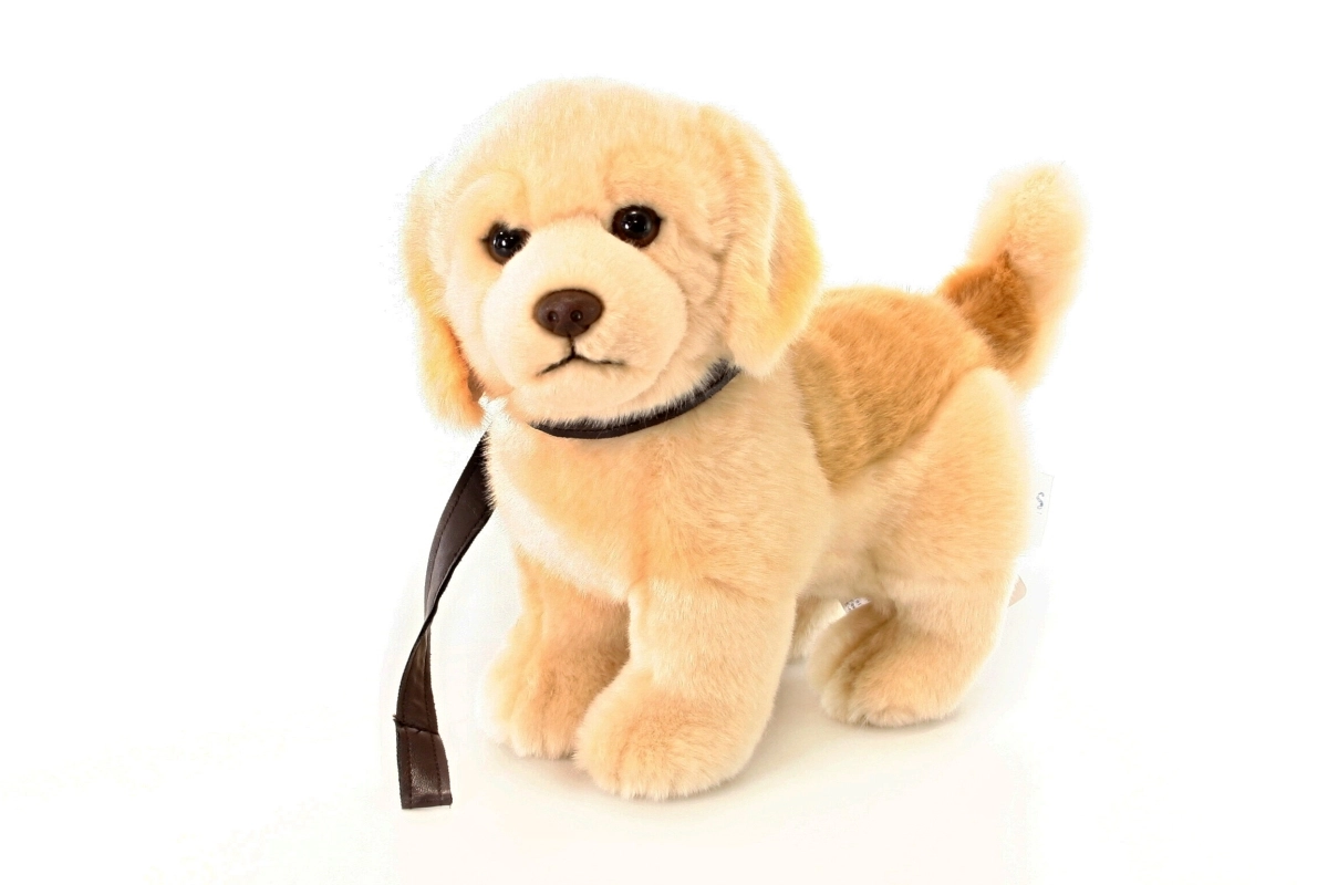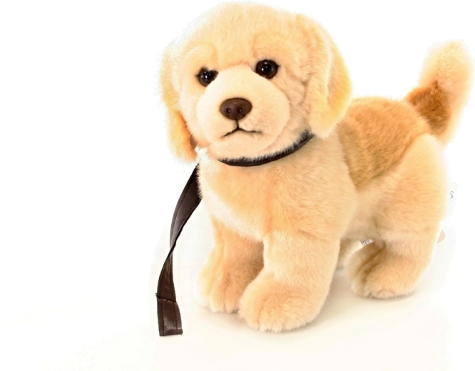 Acest puișor de Golden Retriever din pluș, moale și plăcut la atingere, este ideal pentru îmbrățișat, joacă și primele povești ale copiilor. Datorită construcției stabile, cățelul stă singur în picioare, iar cu lesa inclusă, copiii se pot bucura de un joc realist de plimbare.