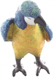Penaj texturat, forma ciocului și a ghearelor, precum și coada lungă tipică redau aspectul autentic al arei albastru-galbene.