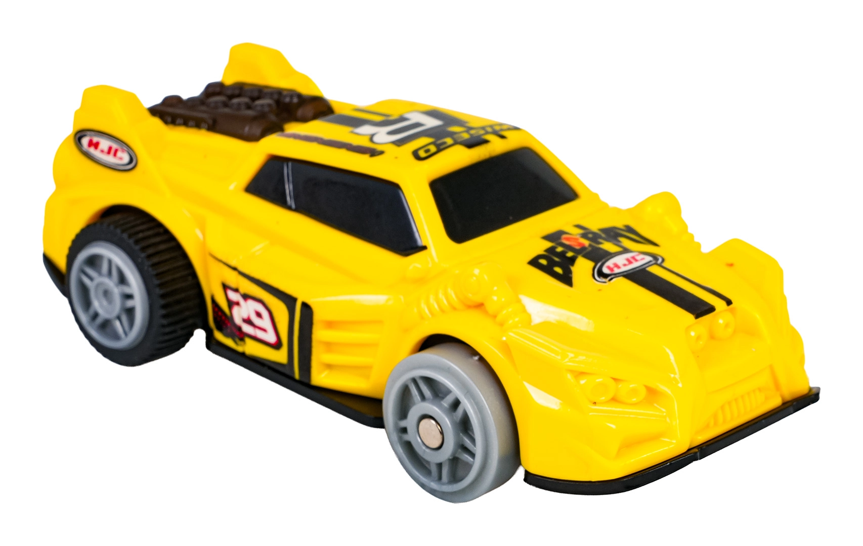 Vehiculul compact galben, cu rulare lină a roților și lumină spate, intensifică distracția la condusul pe timp de noapte. Alimentare 2× AAA (nu sunt incluse).