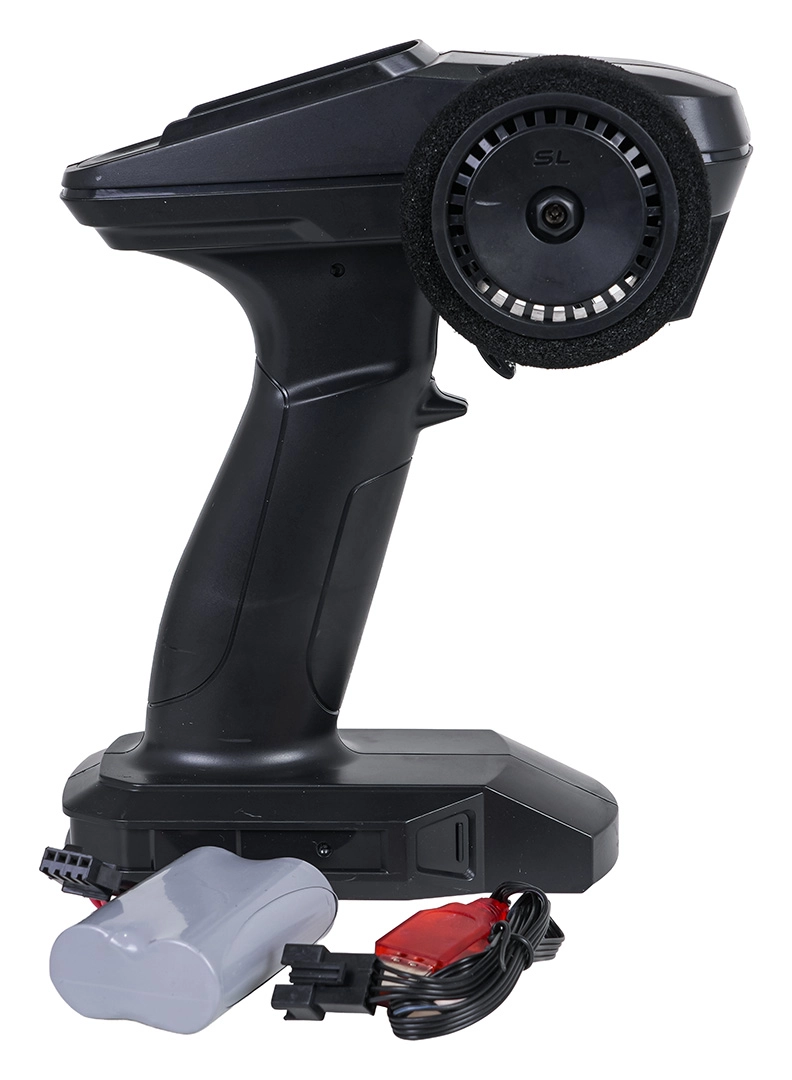 Telecomanda tip pistol pe frecvența de 2,4 GHz oferă direcționare lină fără interferențe, posibilitatea de a rula mai multe modele simultan și reglaj fin al direcției.