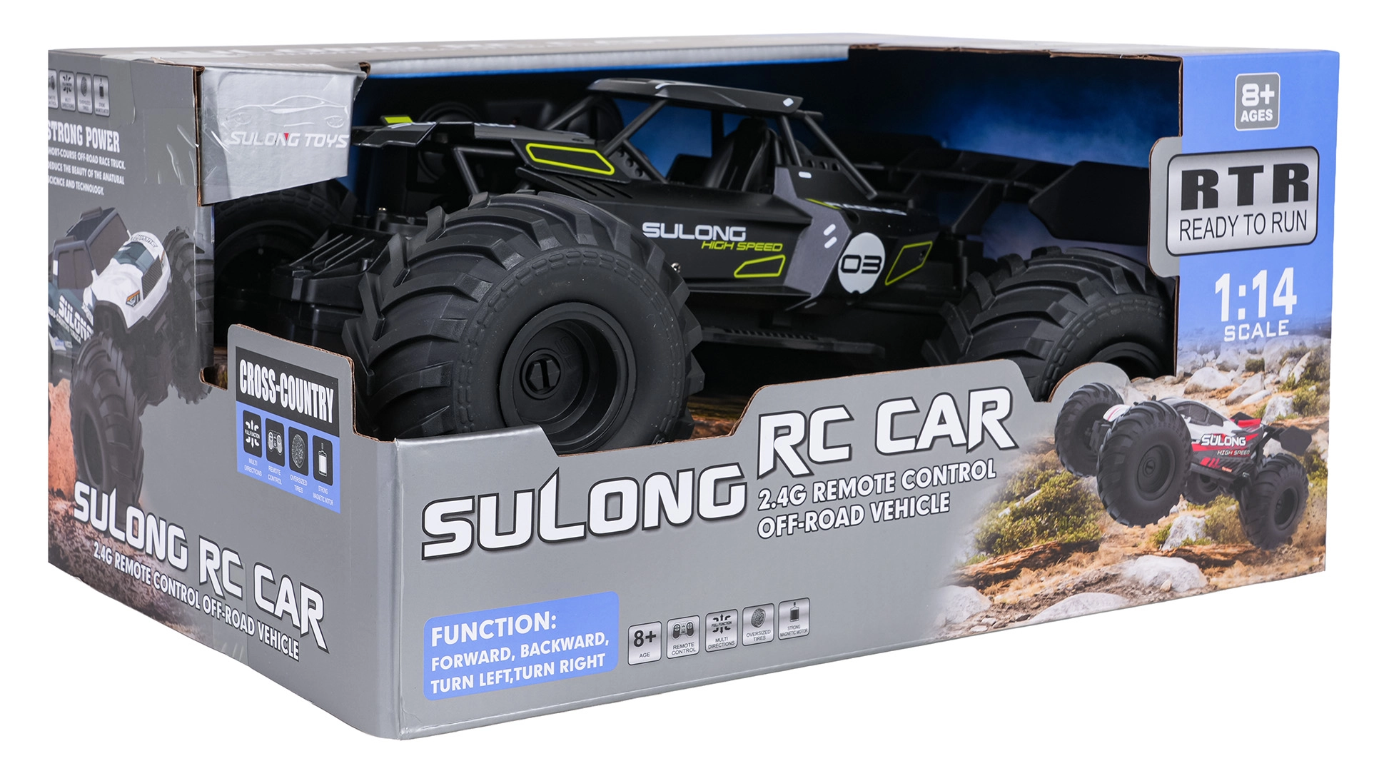 Descoperă distracția în off-road cu acest crawler RC la scară 1:14. Datorită caroseriei metalice, structurii anticoliziune și suspensiei amortizate, face față terenului dificil și obstacolelor. Anvelopele mari din cauciuc oferă tracțiune excelentă, iar controlul de 2,4 GHz asigură direcționare lină în toate direcțiile. Ideal pentru copii de la 8 ani.