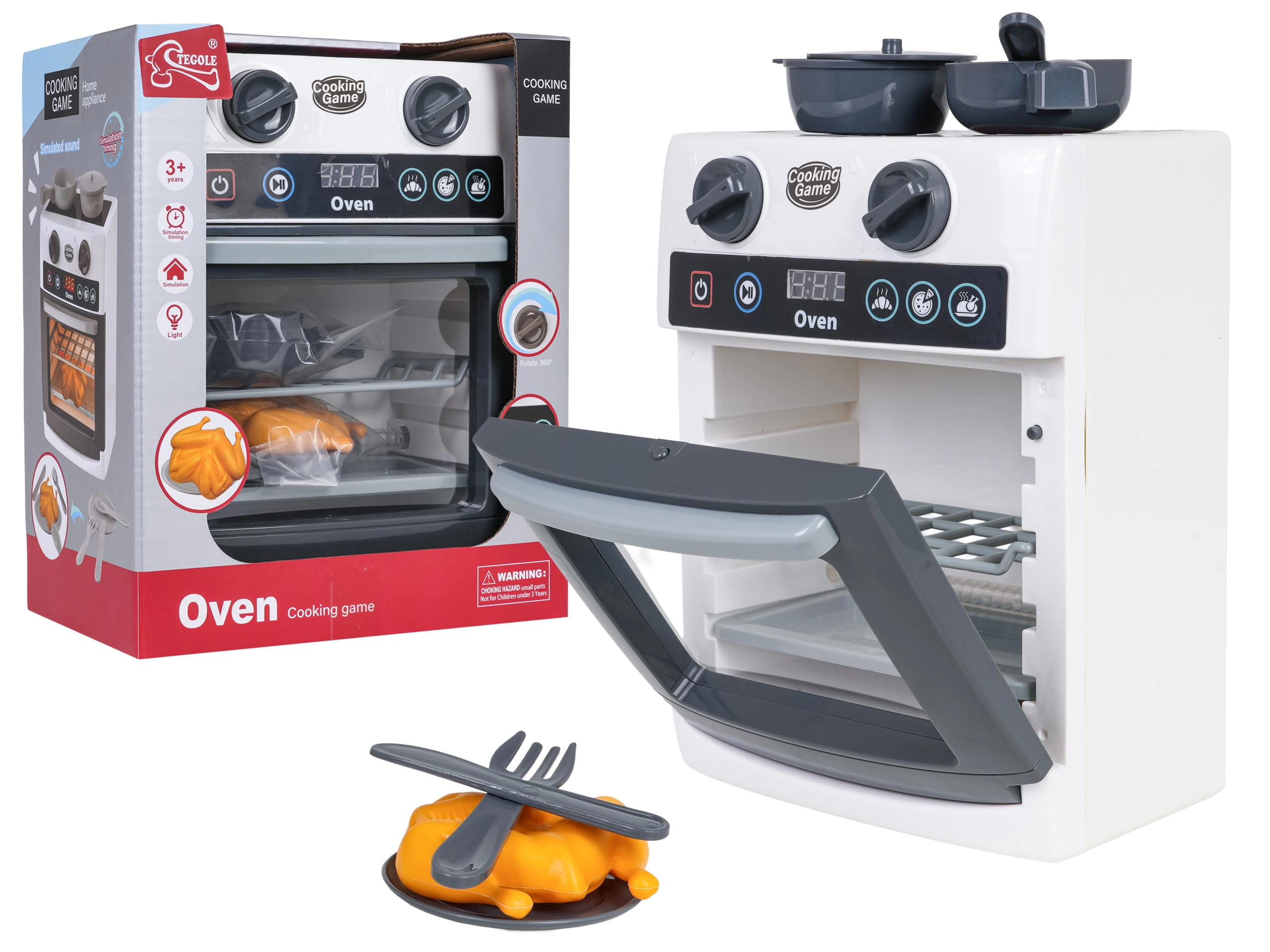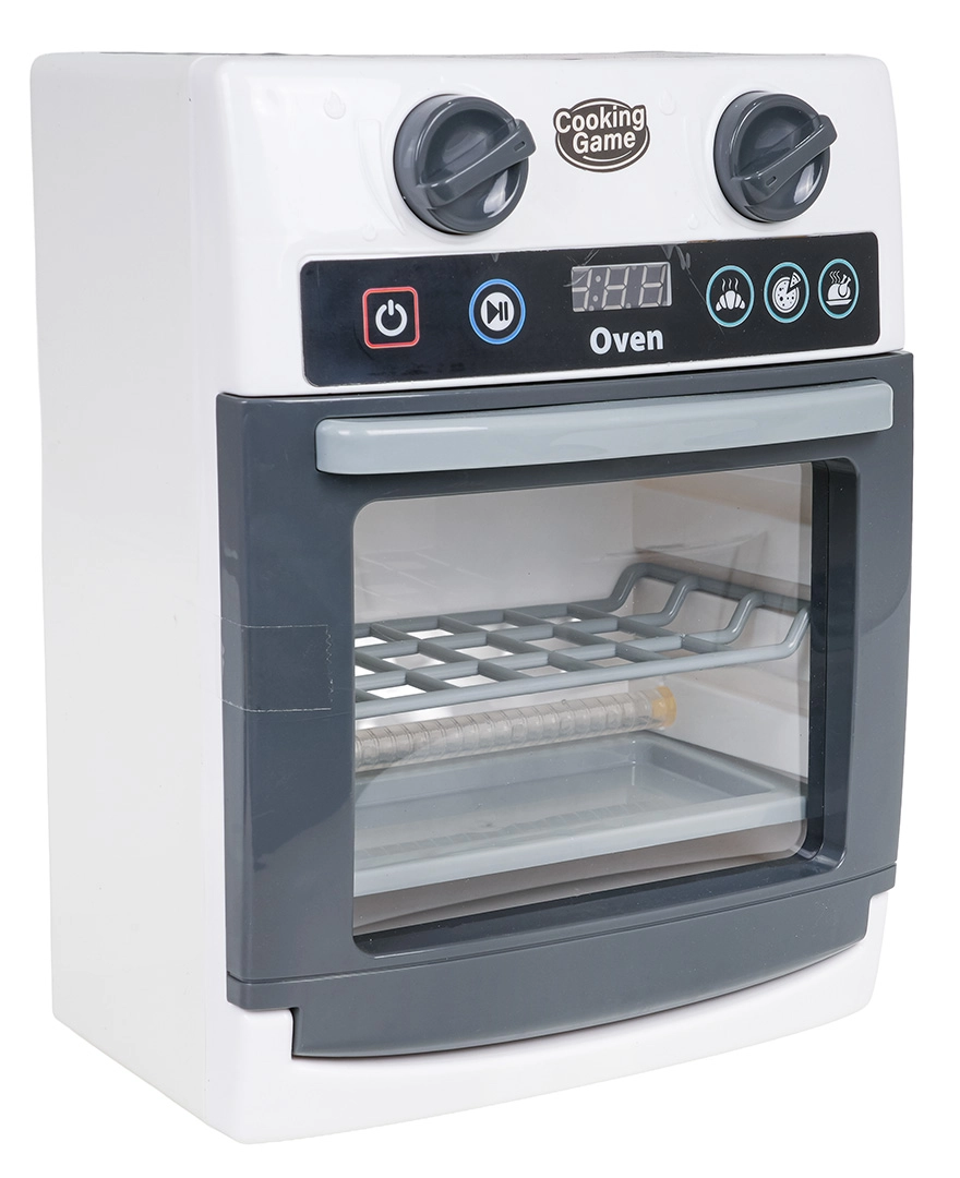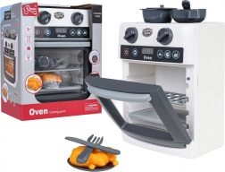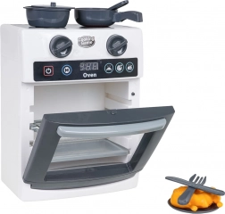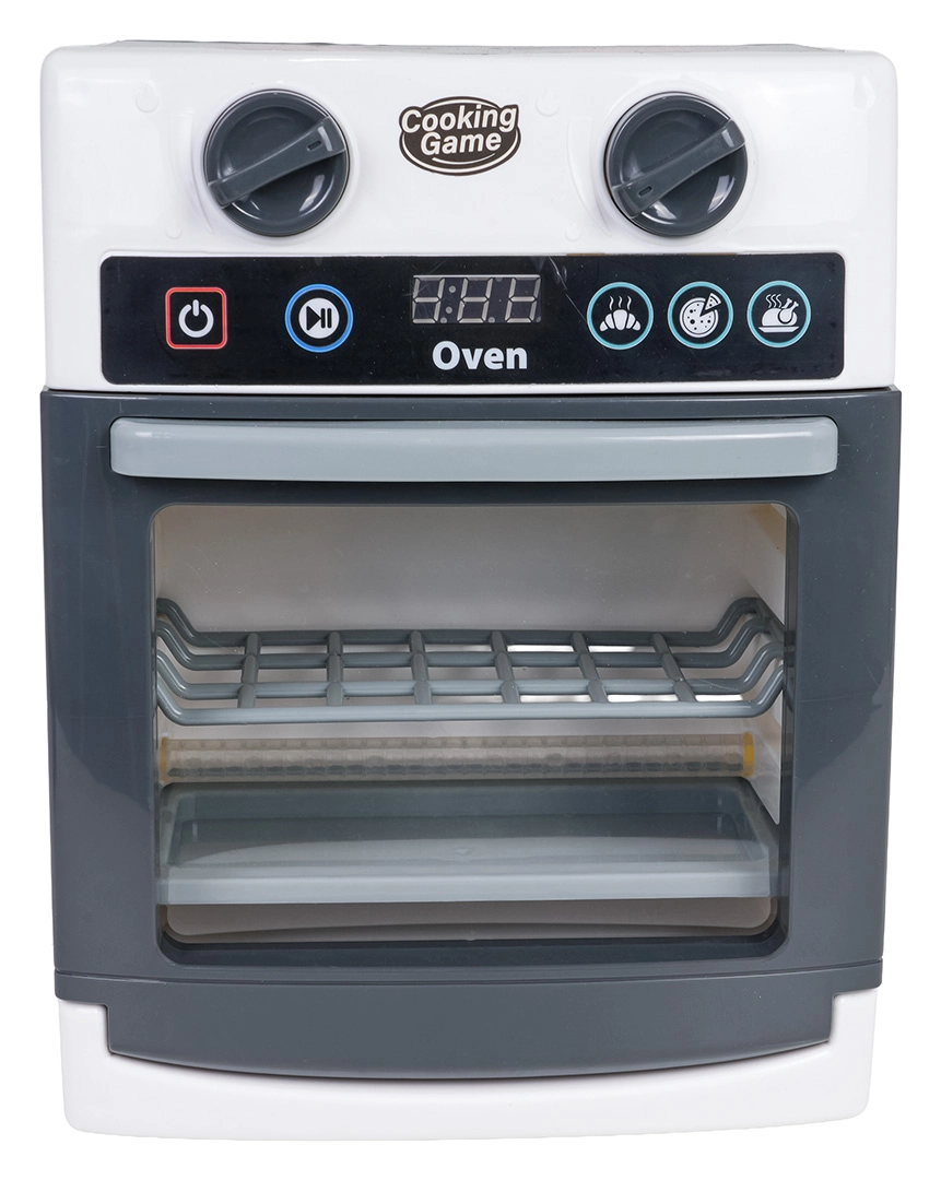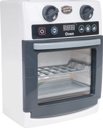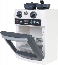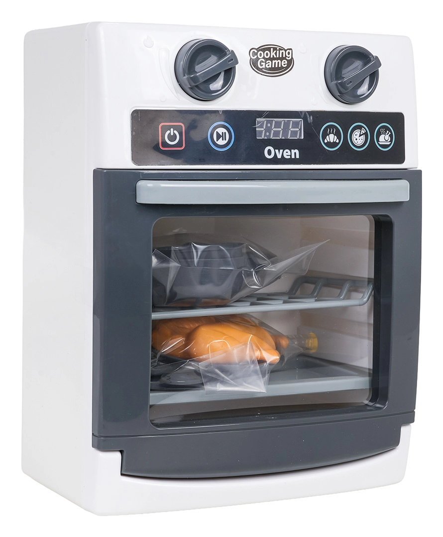 Acest cuptor pentru copii imită fidel un aparat real – are ușă transparentă, rotițe mobile de control și panou cu temporizator. În timpul coacerii se aprinde interiorul și se aud sunete realiste de deschidere/închidere a ușii, coacere și final de program. Jocul de-a bucătarul capătă astfel o nouă dimensiune de creativitate și fantezie.