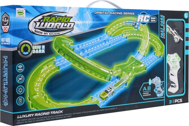 - Pistă fluorescentă – strălucește în întuneric pentru o experiență vizuală maximă.
