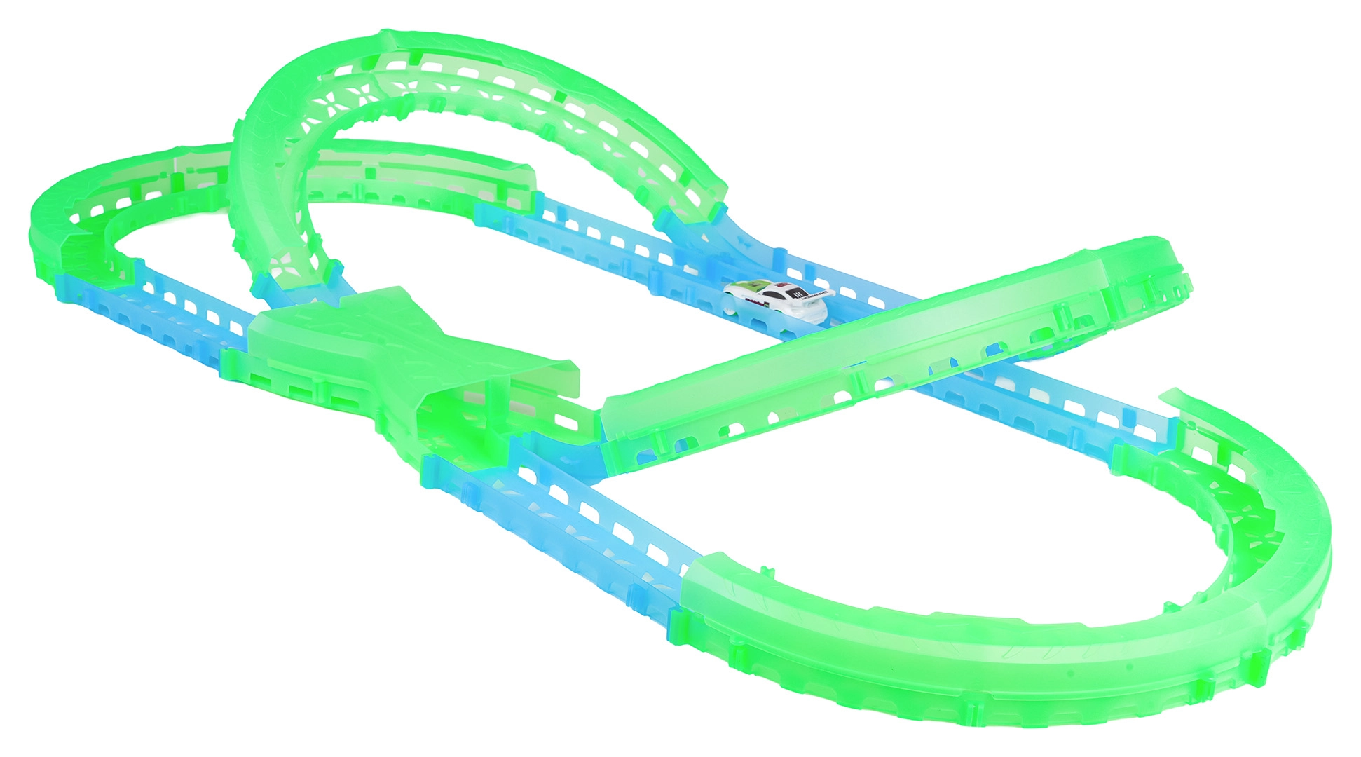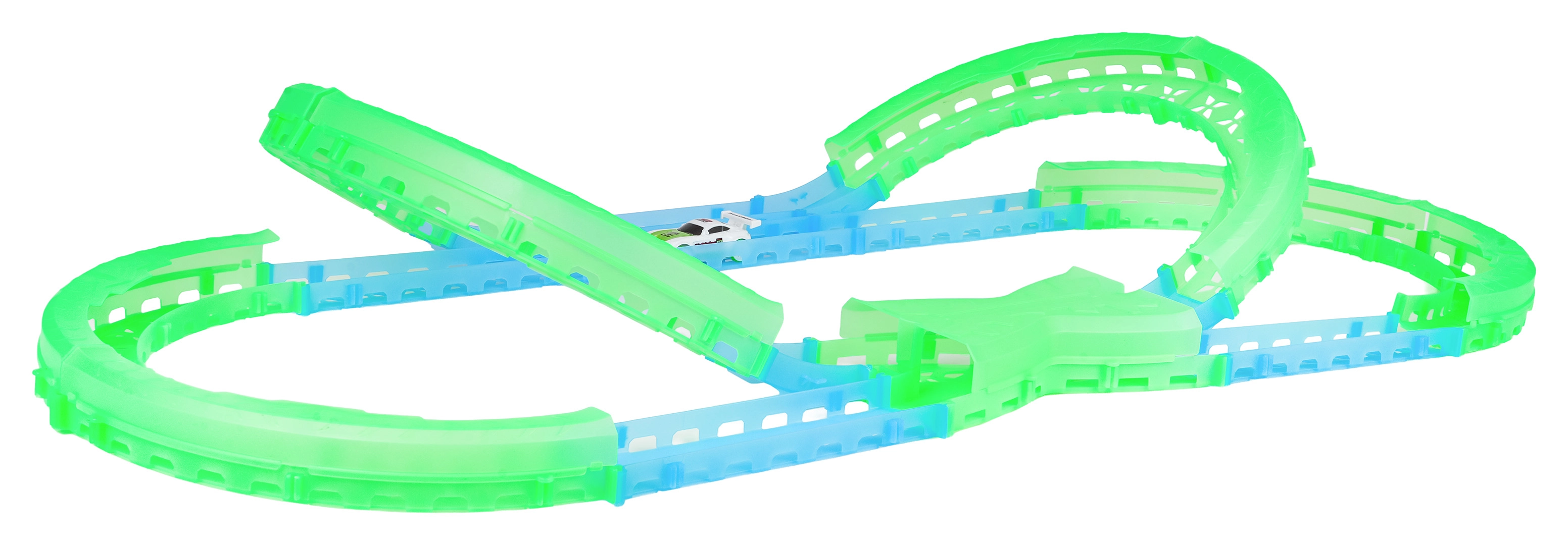 Construirea pistei stimulează imaginația și dezvoltă abilitățile de coordonare și manuale. Controlul este simplu: mașinuța rulează înainte pe piesele conectate, iar datorită efectelor luminoase cursa este atrăgătoare chiar și cu luminile stinse.
