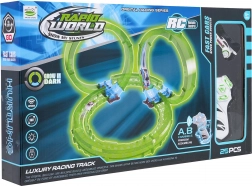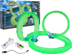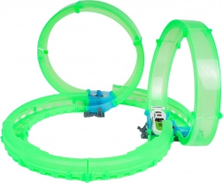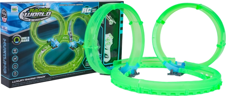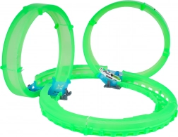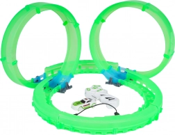 Această pistă compactă, cu elemente strălucitoare și translucide, oferă curse dinamice cu efecte luminoase captivante. Mașinuța cu LED-uri zboară prin bucle și curbe, lăsând o dâră spectaculoasă în întuneric. Datorită controlului de la distanță, ai mereu viteza și direcția sub control.