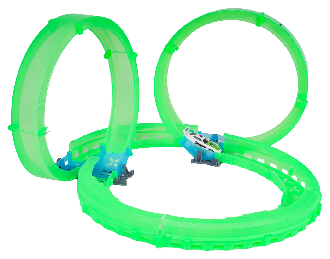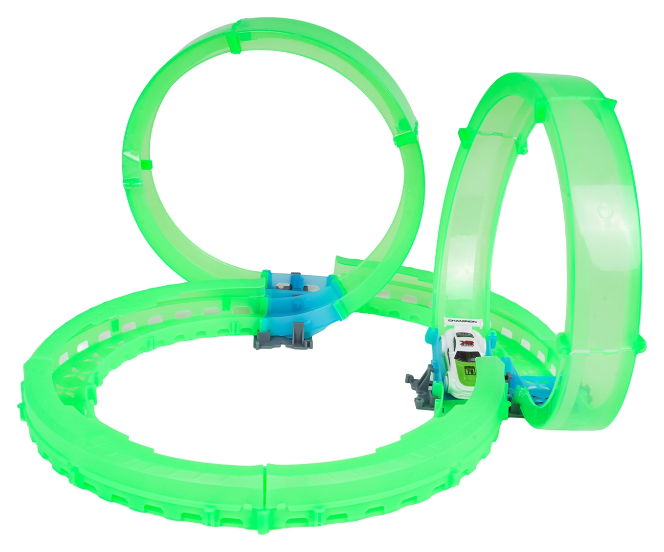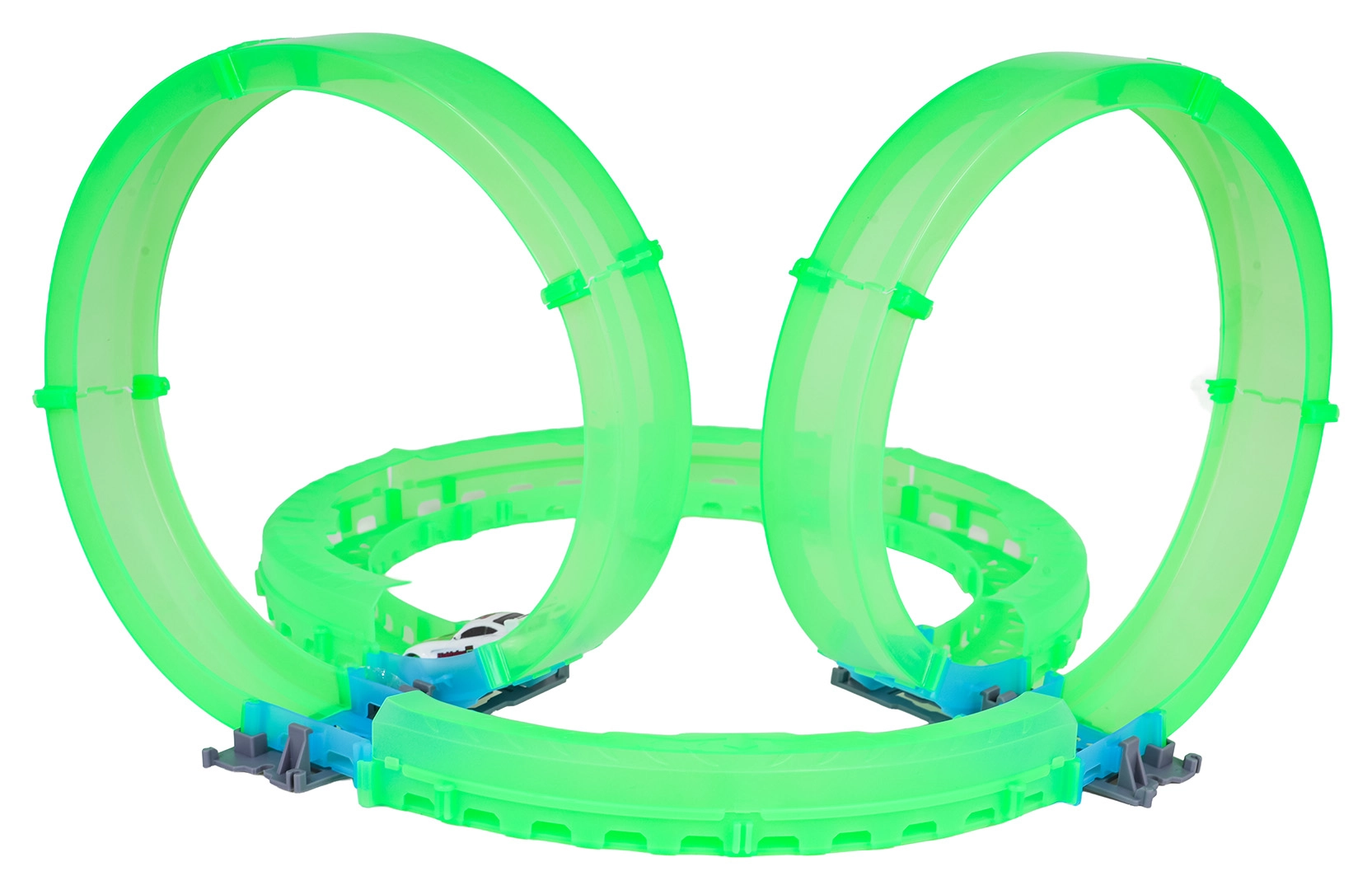 Elementele translucide ale pistei strălucesc în întuneric și permit o cursă spectaculoasă plină de bucle și curbe.
