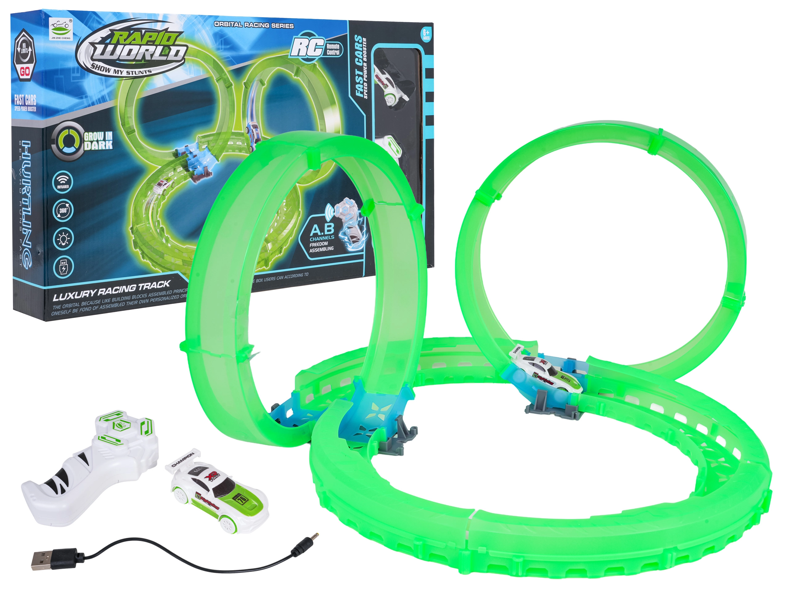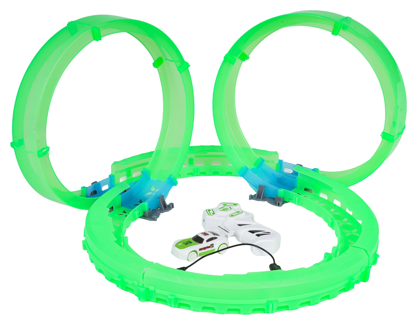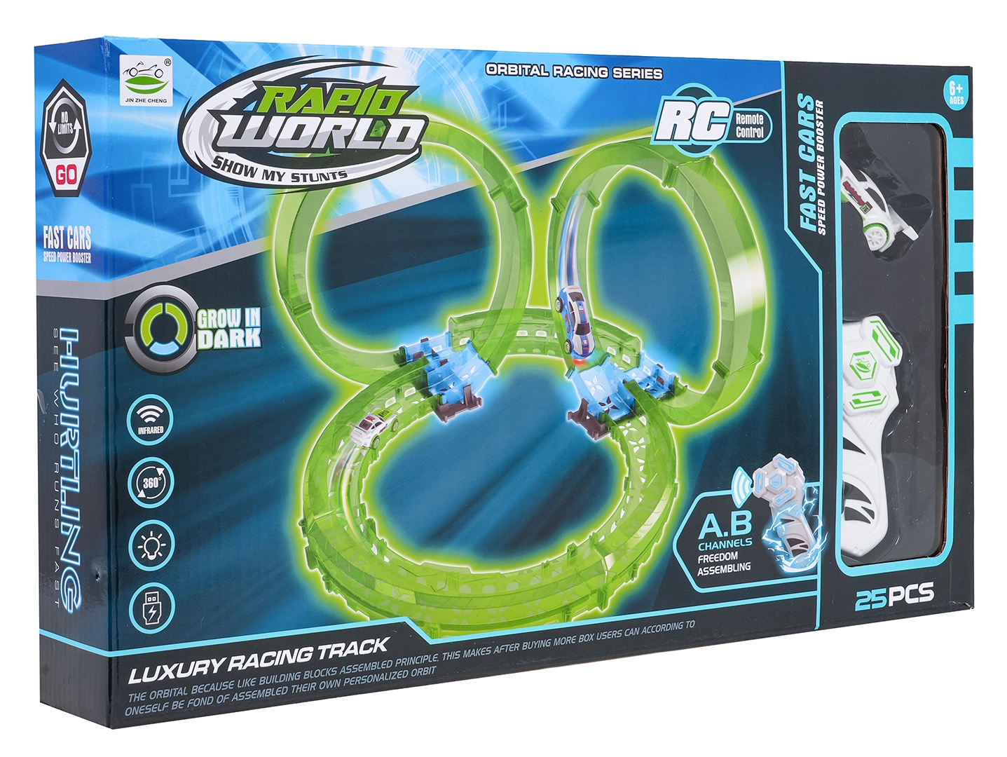 Elementele translucide ale pistei strălucesc în întuneric și permit o cursă spectaculoasă plină de bucle și curbe.