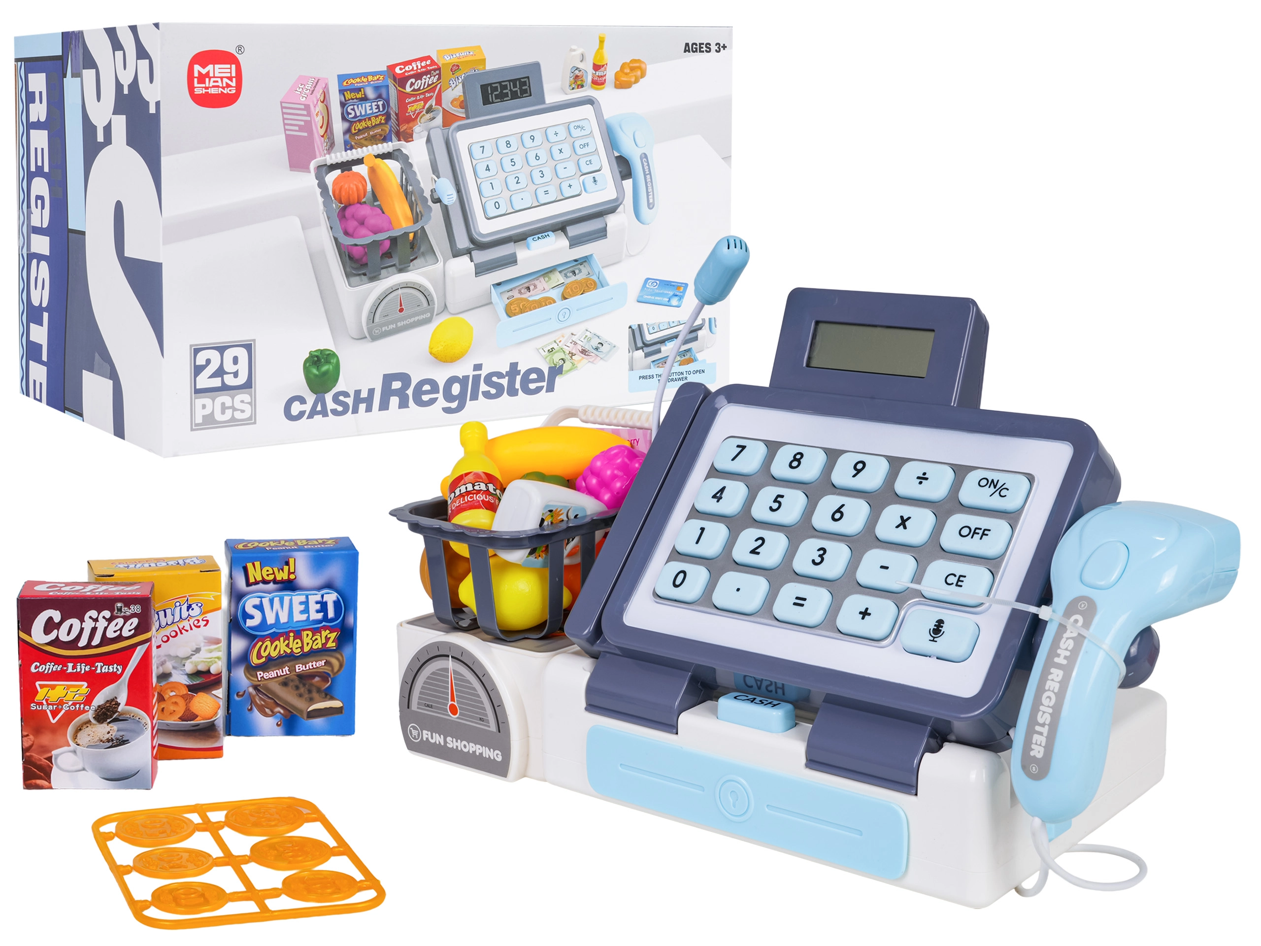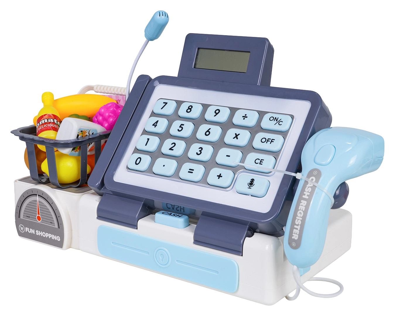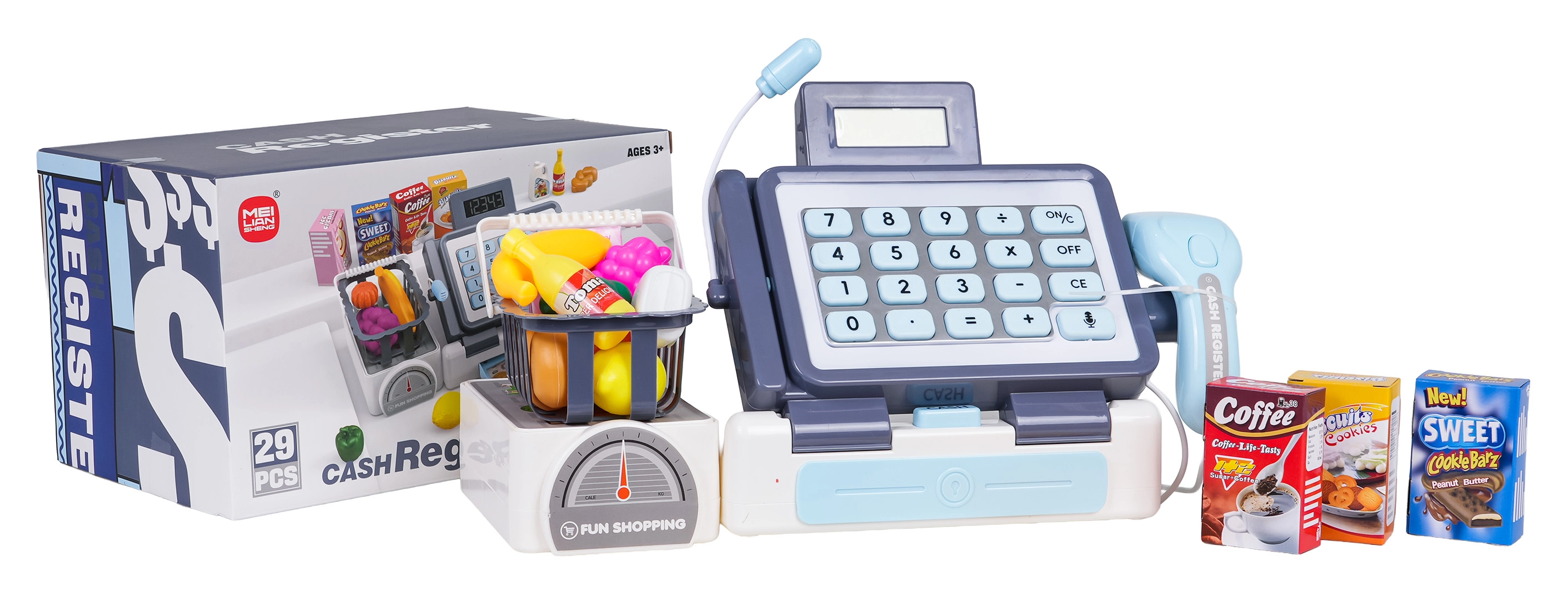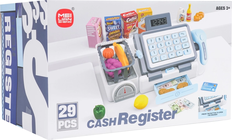 Această casă de marcat realistă, în culori vii, este fabricată din plastic de calitate și oferă copiilor tot ce au nevoie pentru un joc autentic de-a magazinul. Datorită calculatoarei funcționale, scannerului cu luminiță intermitentă și sunet, precum și microfonului, copiii își exersează cu ușurință calculele, comunicarea și motricitatea fină. Setul include și cântar (de decor), sertar pentru bani și coș de cumpărături cu alimente.