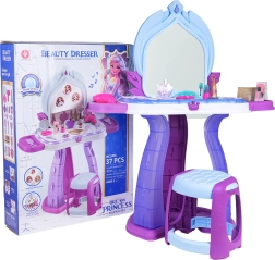 Setul include un scăunel și o serie de accesorii precum uscător de păr, pieptene, perie, agrafe și „cosmetice” pentru joacă în siguranță. Măsuța este realizată din materiale de calitate, sigure pentru copii, în culori atrăgătoare care încurajează joaca independentă și creativă.