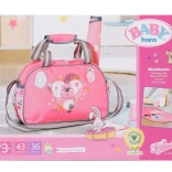 Această geantă stilată pentru schimbat pentru păpușile BABY born este concepută pentru organizarea ușoară a tuturor necesarelor în excursii și în îngrijirea de zi cu zi. Copiii vor găsi în ea o salteluță pentru schimbat, un scutec și o cutie pentru pudră, iar în continuare rămâne loc pentru alte mărunțișuri utile la drum.