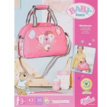 Geanta practică pentru schimbat pentru păpuși BABY born oferă tot ce este necesar pentru îngrijirea în deplasare: salteluță pentru schimbat, scutec de rezervă și cutie pentru pudră. Datorită spațiului de depozitare generos, purtării confortabile pe umăr sau în mână și etichetelor drăguțe, este ideală pentru joc creativ și dezvoltarea abilităților de îngrijire.