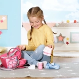 Datorită bretelei de umăr și mânerelor rezistente, geanta se poartă confortabil în moduri diferite. Etichetele drăguțe de pe breteaua de umăr adaugă un detaliu distractiv la momentul schimbării. Setul este compatibil cu păpuși de 36 cm și 43 cm și susține jocul imaginativ, variat și de durată.