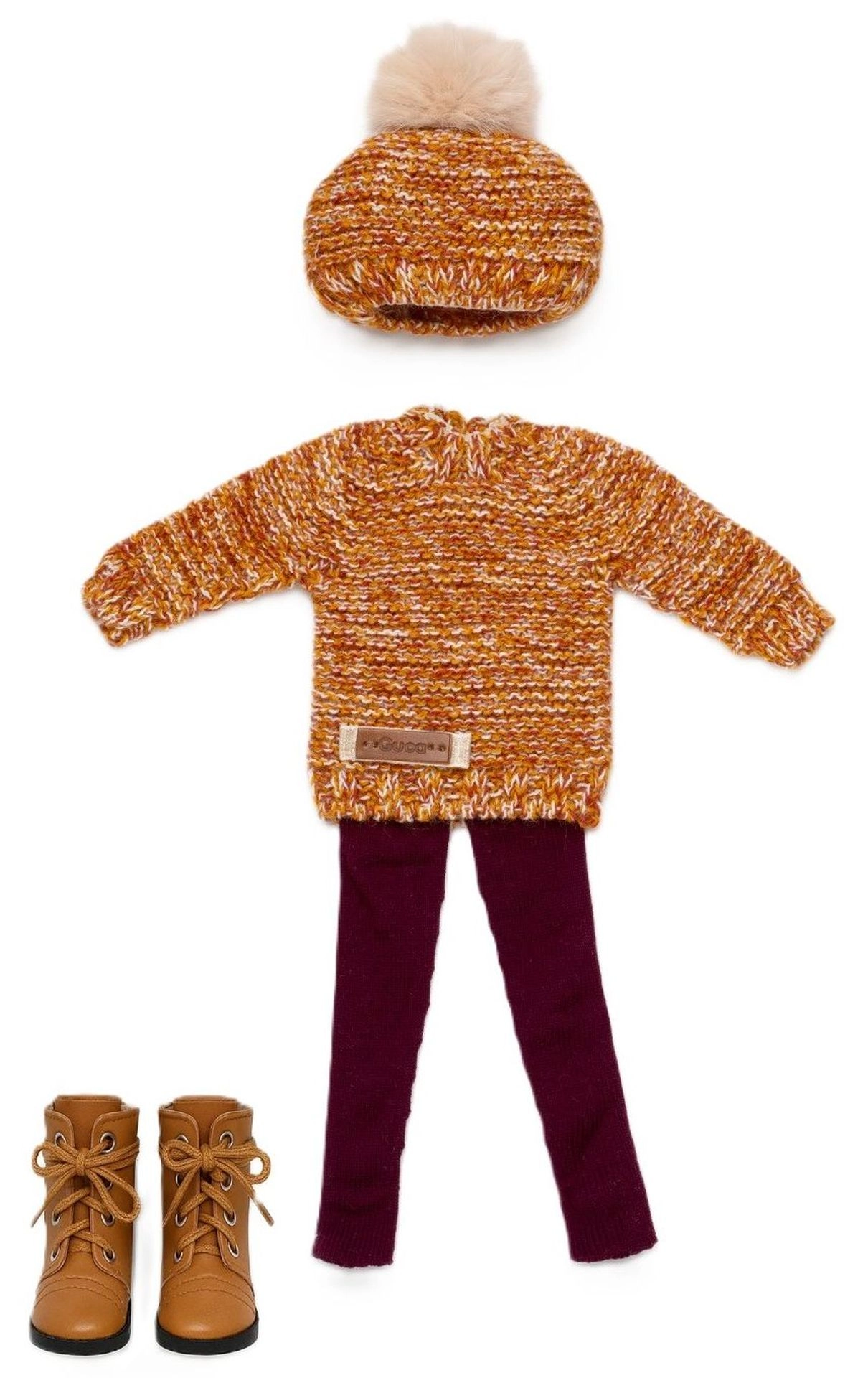 Set stilat din 4 piese pentru păpușa Penelope 34 cm, include pulover, căciulă, colanți și ghetuțe din imitație de piele cu șireturi. Realizat manual în Spania cu accent pe detalii, ideal pentru ținute de toamnă și iarnă. Îmbrăcare ușoară, texturi tricotate de calitate și accesorii realiste pentru joc creativ. Potrivit de la 3 ani.