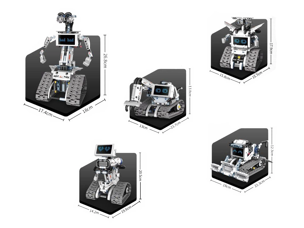 Acest set modern de construcție oferă tot ce au nevoie copiii pentru a asambla și controla până la cinci modele robotice diferite dintr-un singur set de piese. Datorită telecomenzii, tracțiunii pe șenile și ecranului expresiv „față”, micii ingineri se vor bucura de ore de distracție și învățare.