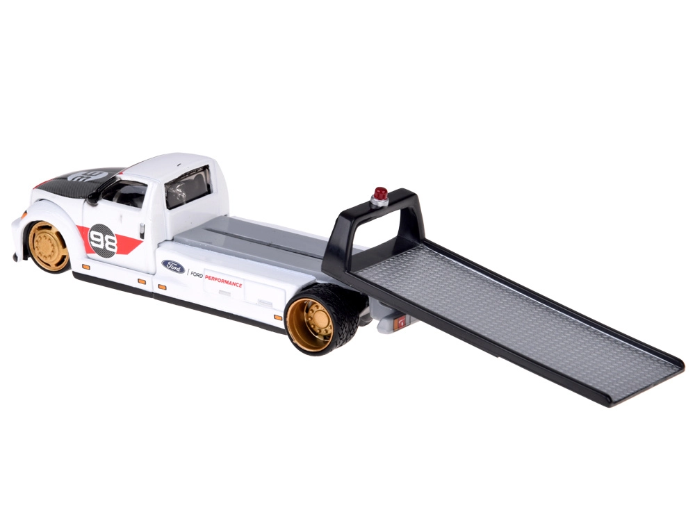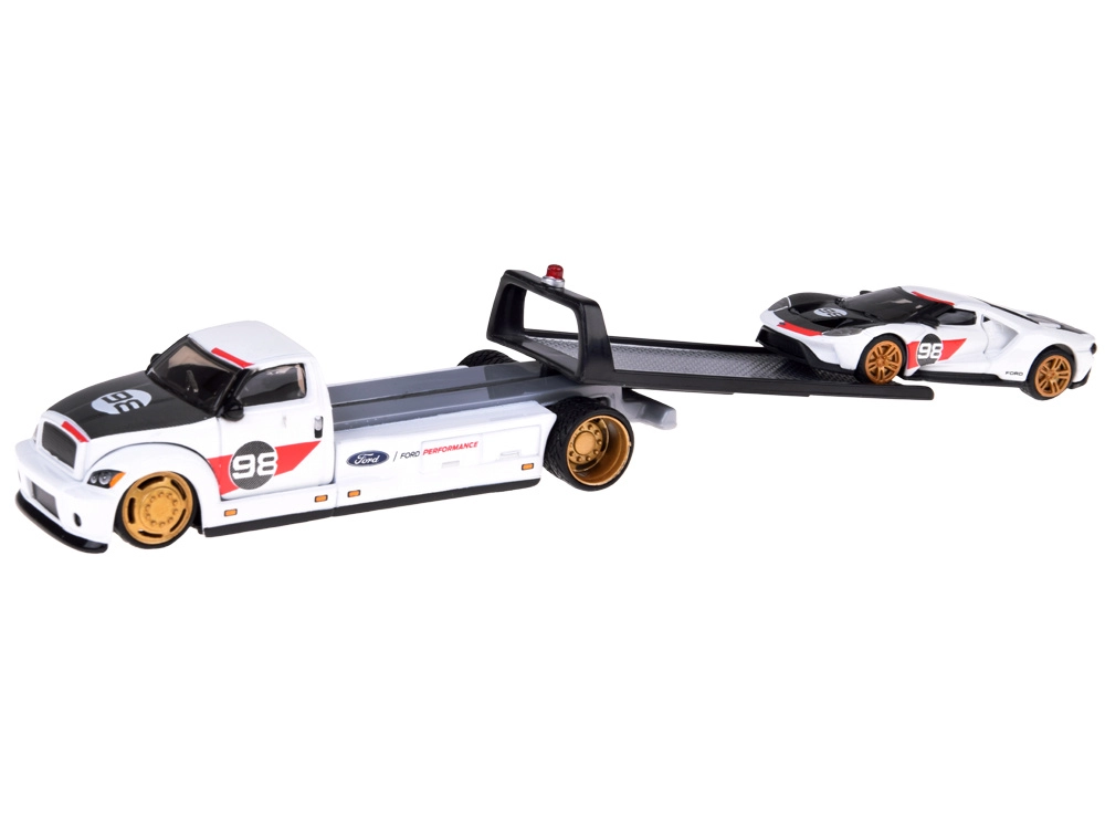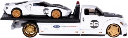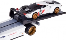 Camionul de remorcare dispune de platformă glisantă și rampă rabatabilă pentru încărcarea și descărcarea ușoară a modelului FORD GT – ideal pentru joc realist.