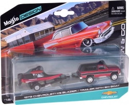 Acest set licențiat de la Maisto combină clasicul CHEVROLET K5 BLAZER 1979 în scheme roșu-negru cu o remorcă și o barcă cu motor elegantă. Caroseria metalică, proporțiile precise și detaliile autentice ale caroseriei și interiorului vor încânta orice fan al clasicelor americane.