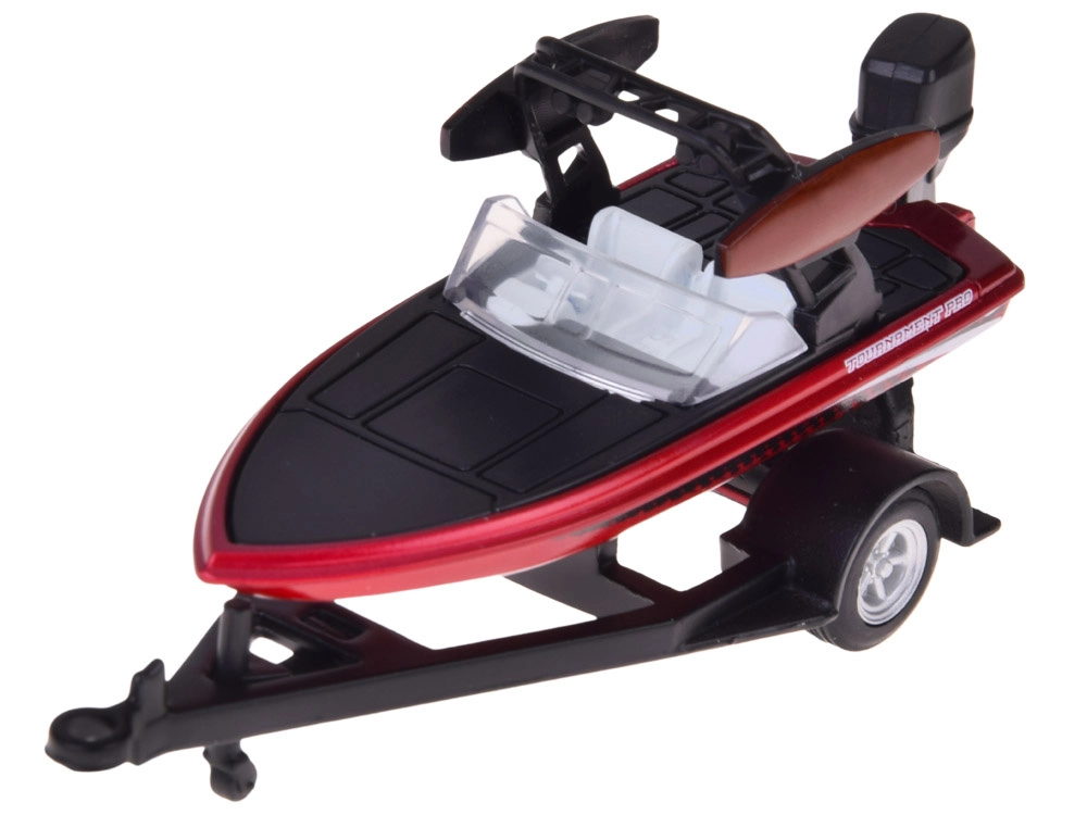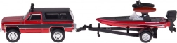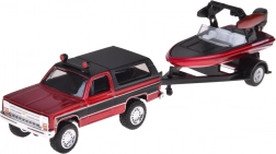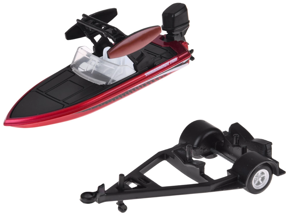 Modelul oferă dispozitiv de tractare funcțional cu posibilitatea de a detașa remorca, o barcă cu motor exterior realizată realist și roți care se rotesc lin pentru o rulare fluidă. Arată excelent în vitrină și rezistă totodată la joaca de zi cu zi.