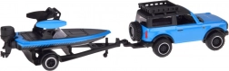 Descoperă combinația atrăgătoare dintre o icoană off-road și aventura pe apă: FORD Bronco 2021 la scara 1:64 tractează o remorcă cu o barcă elegantă. Modelul se remarcă prin caroseria metalică, liniile reproduse cu precizie și accentele contrastante care subliniază aspectul autentic. Remorca și barca pot fi detașate cu ușurință pentru și mai multe scenarii de joc.