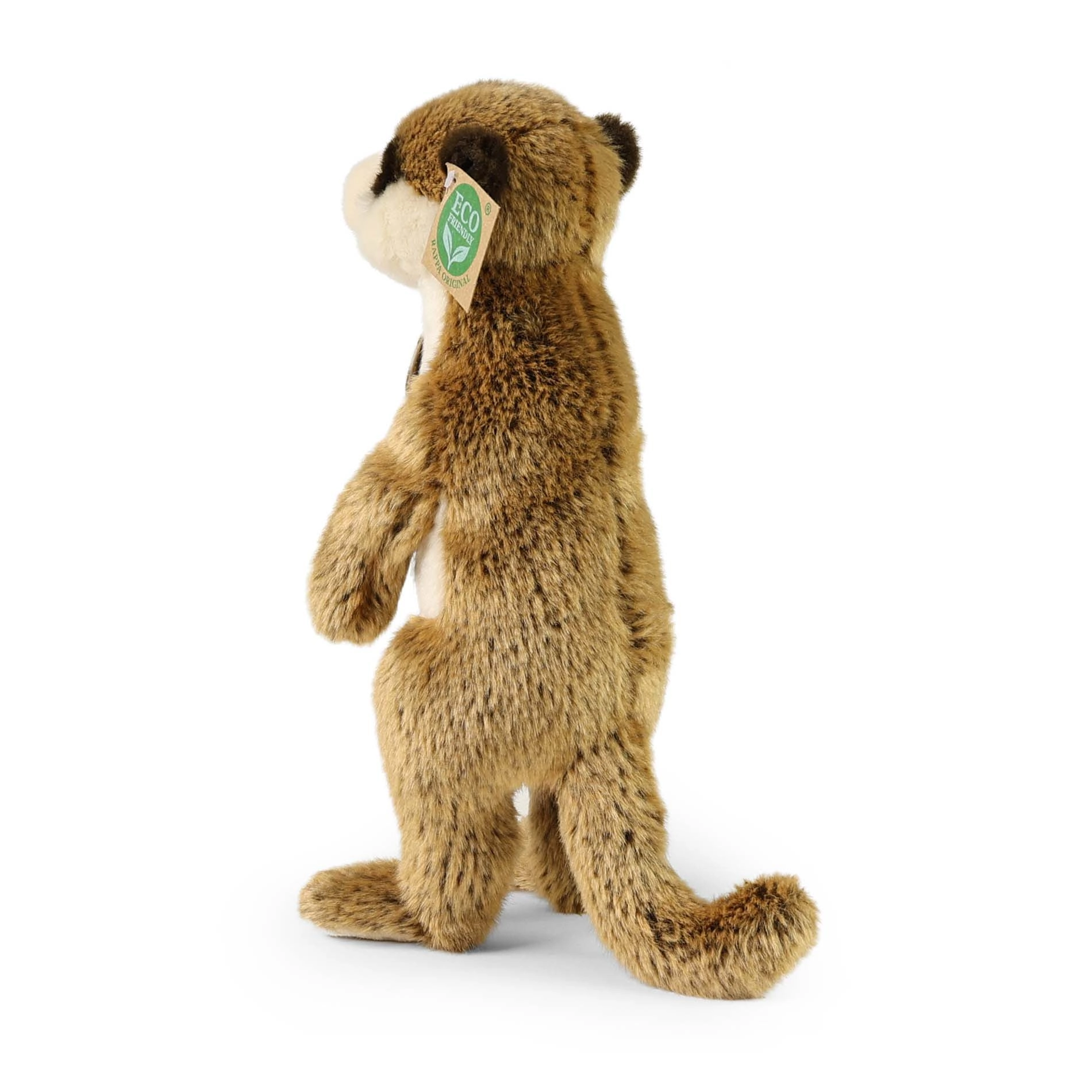 Această suricată de pluș îmbină finețea la atingere cu detalii realiste – stă în poziție verticală, are un colorit fidel și măști oculare distincte. Datorită lucrului manual, fiecare exemplar este unic și gata să devină prietenul preferat pentru joaca zilnică și pentru adormit.