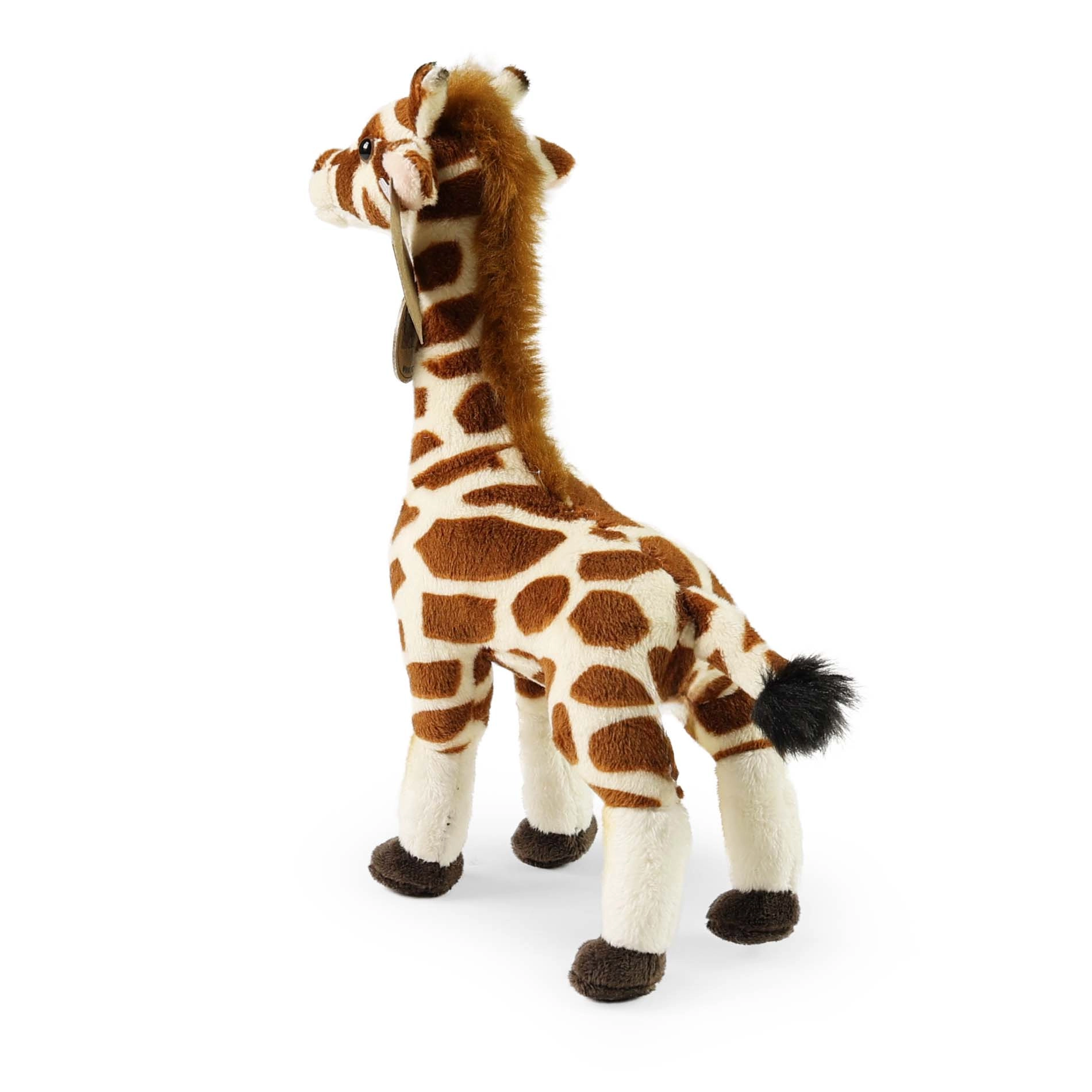 Această girafă de pluș se remarcă prin execuția detaliată, elementele realizate manual și modelul autentic al blănii. Plușul moale invită la îmbrățișare, iar corpul mai ferm, în poziție verticală, o face potrivită și ca decorațiune pentru camera copilului.