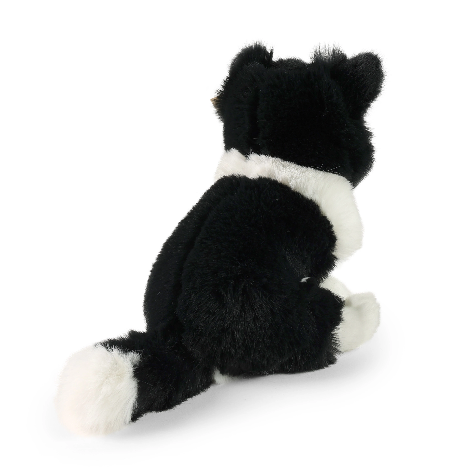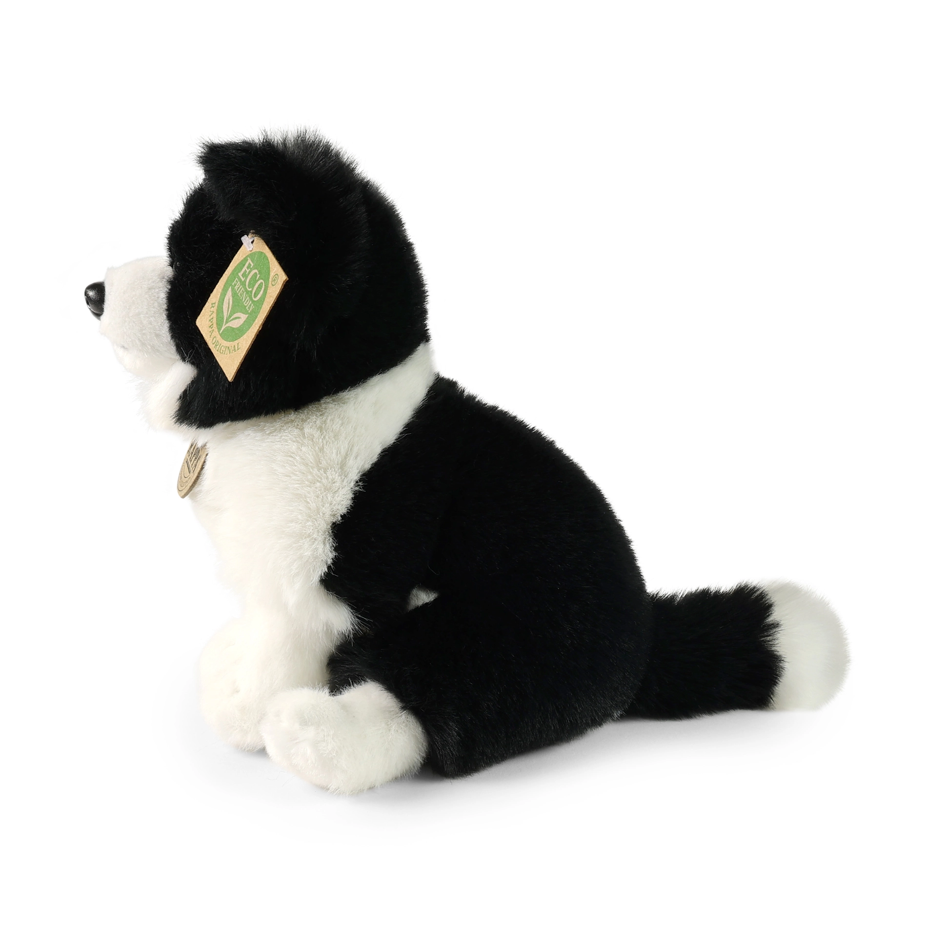 Umplutura este realizată din sticle PET reciclate, este complet sigură și potrivită pentru copii încă de la naștere. Cusătura manuală oferă fiecărui exemplar o expresie unică și coloritul realist tipic pentru Border Collie. O alegere excelentă pentru alint, liniștire și jocuri imaginative.