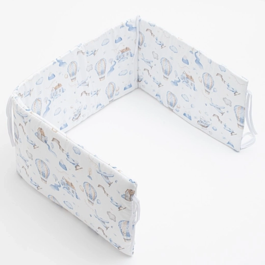 Panglicile practice permit o fixare rapidă și sigură de pătuț. Imprimeul rezistent la decolorare, cu motive liniștitoare, nu se cojește și nu pătează hainele. Umplutura hipoalergenică împiedică înmulțirea microorganismelor și a mucegaiului, fiind potrivită și pentru copiii sensibili.