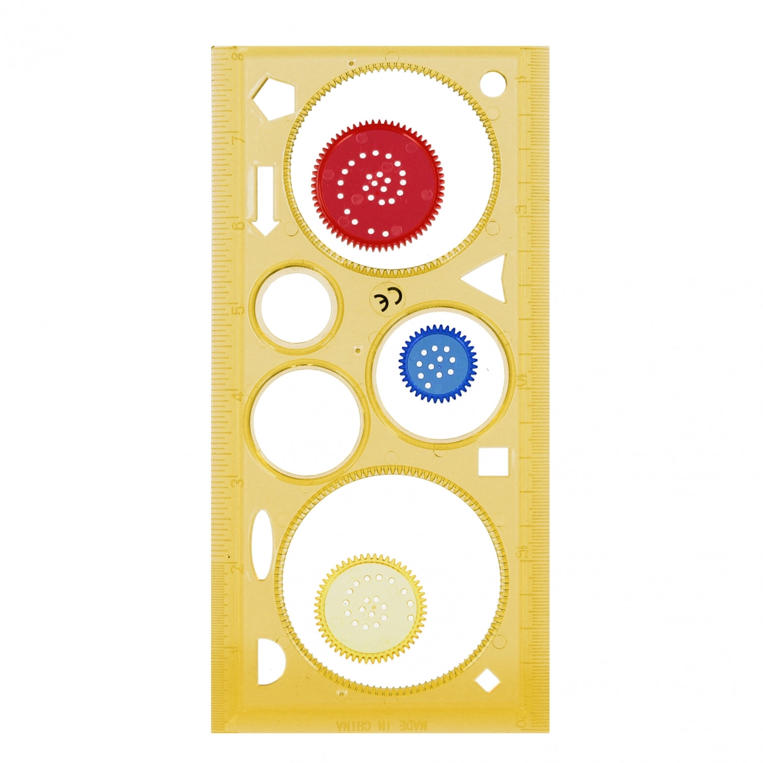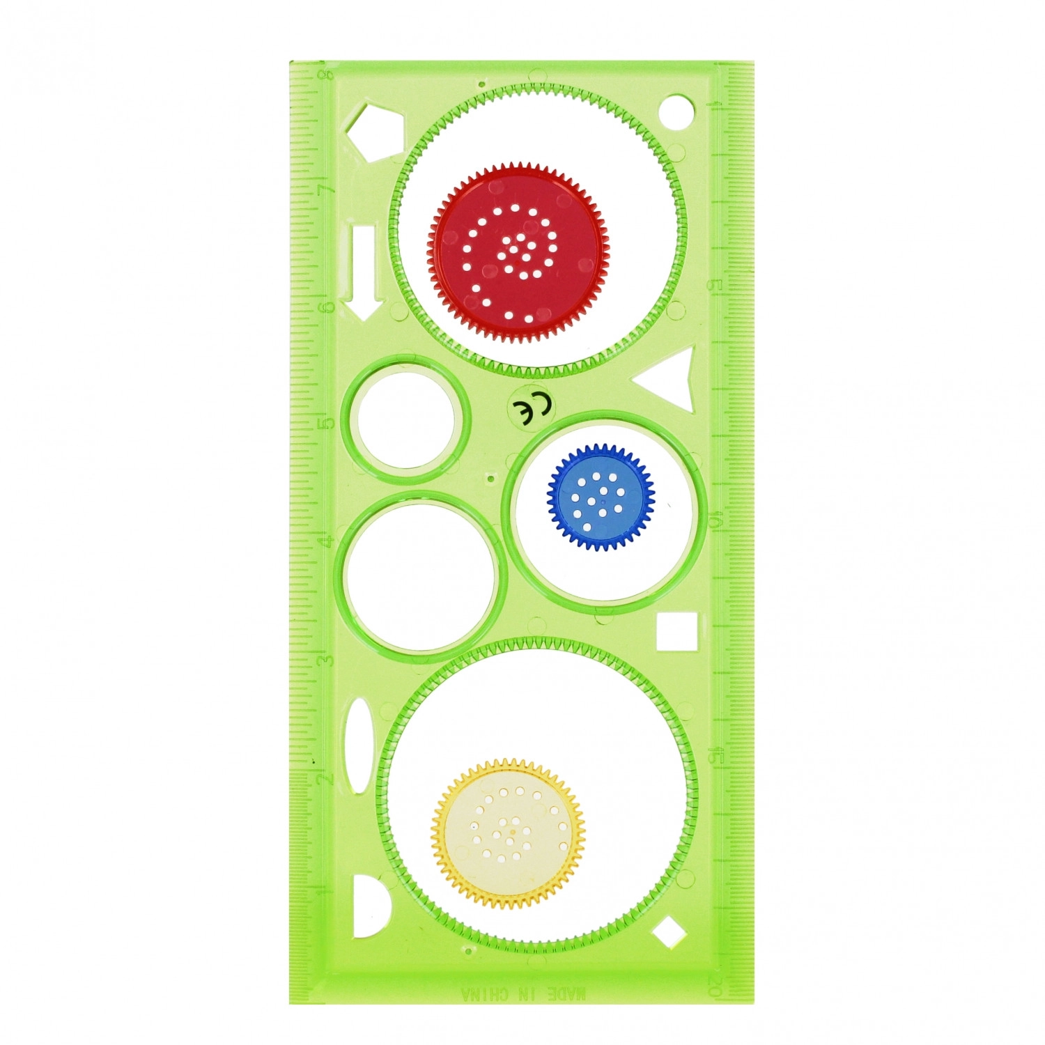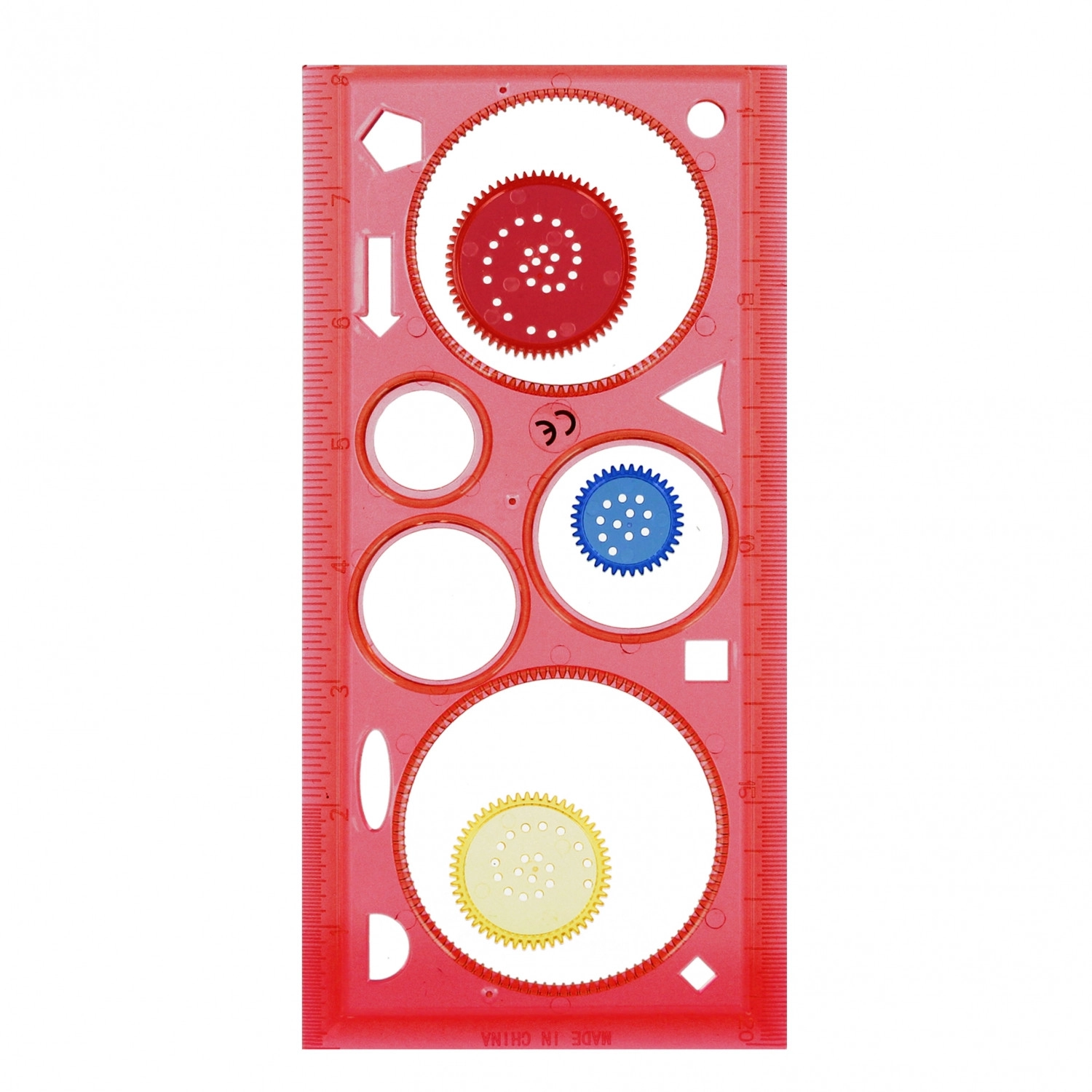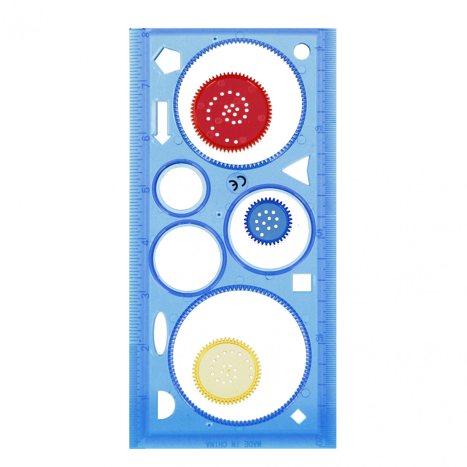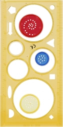 Șablonul funcționează și ca riglă și oferă diverse decupaje pentru desen versatil. Ideal pentru școală și pentru creații acasă.