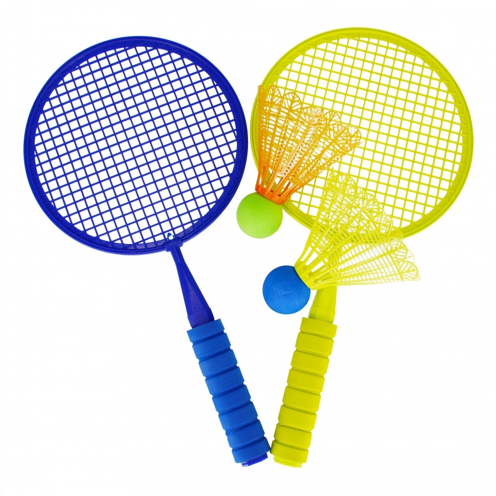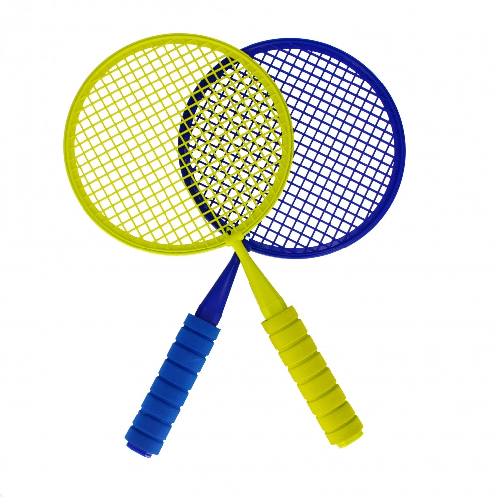 Rachetele din plastic, cu mâner texturat, oferă copiilor o prindere sigură și permit lovituri mai precise fără efort inutil.