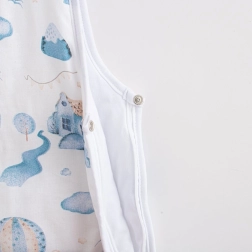 Sacul de dormit New Baby Romance este fabricat din bumbac moale 100% cu umplutură din poliester, care menține o temperatură stabilă și oferă bebelușului un somn liniștit. Motivul drăguț al aventurii de basm printre nori îi va încânta atât pe copii, cât și pe părinți și se potrivește perfect în orice trusou.